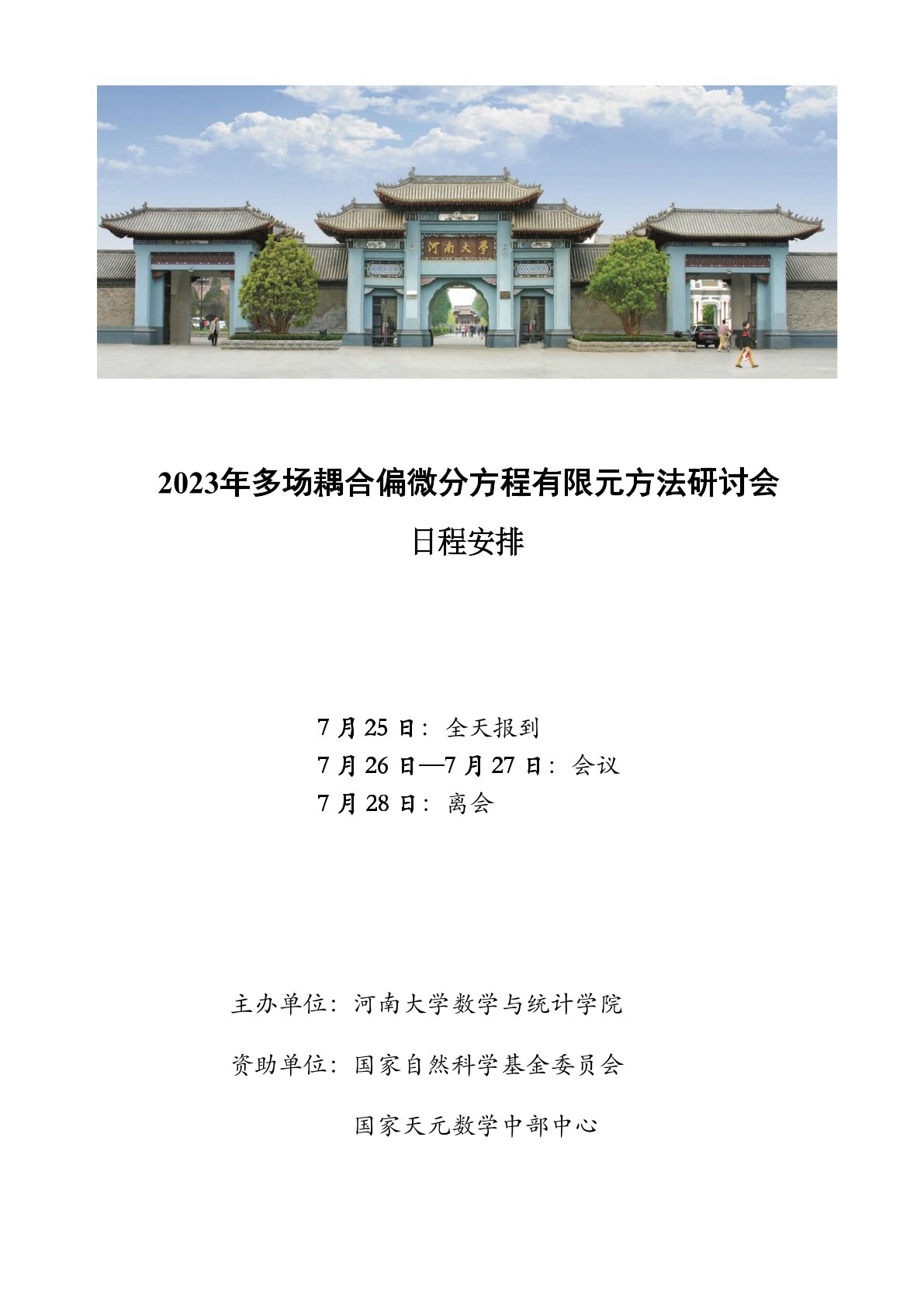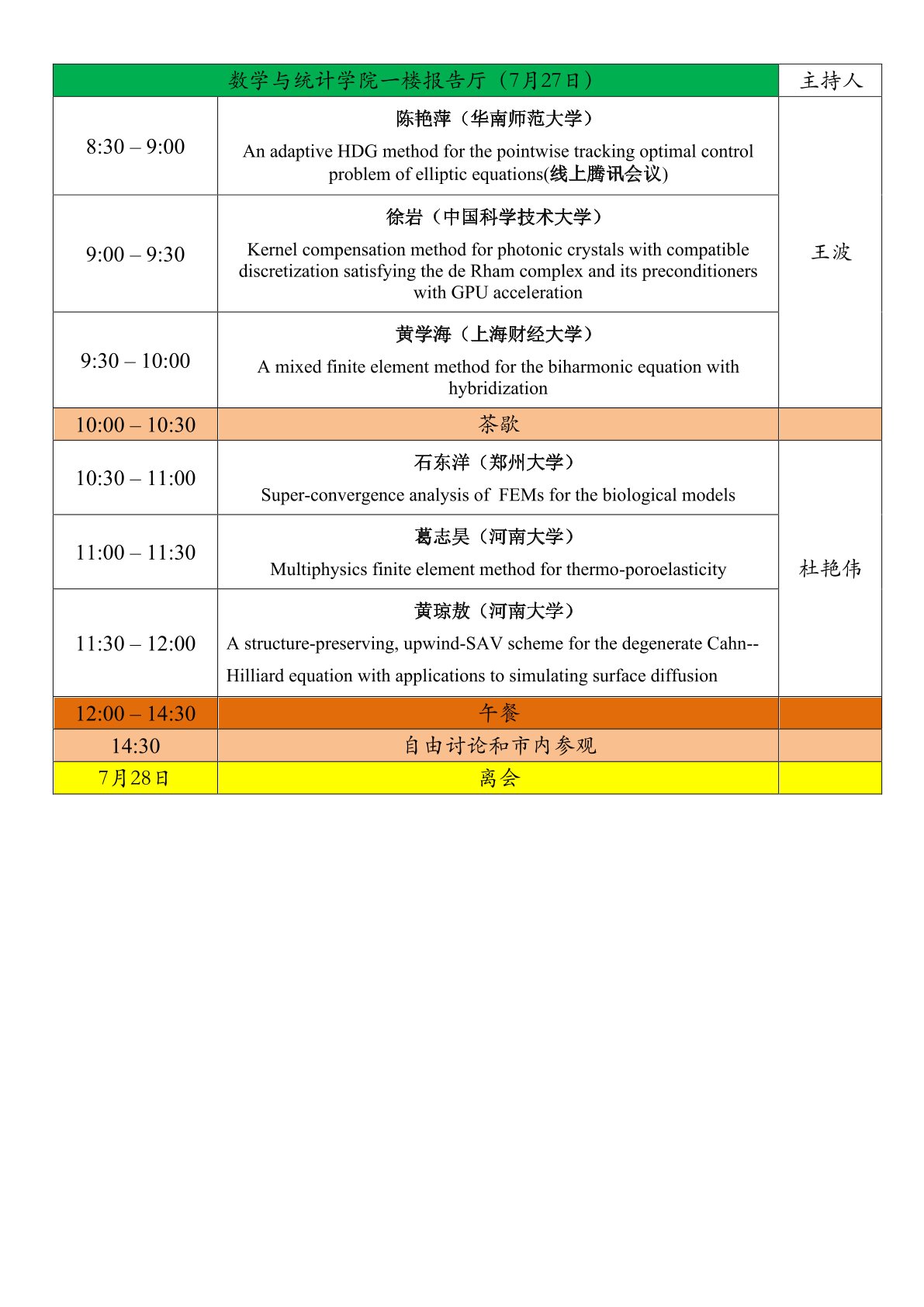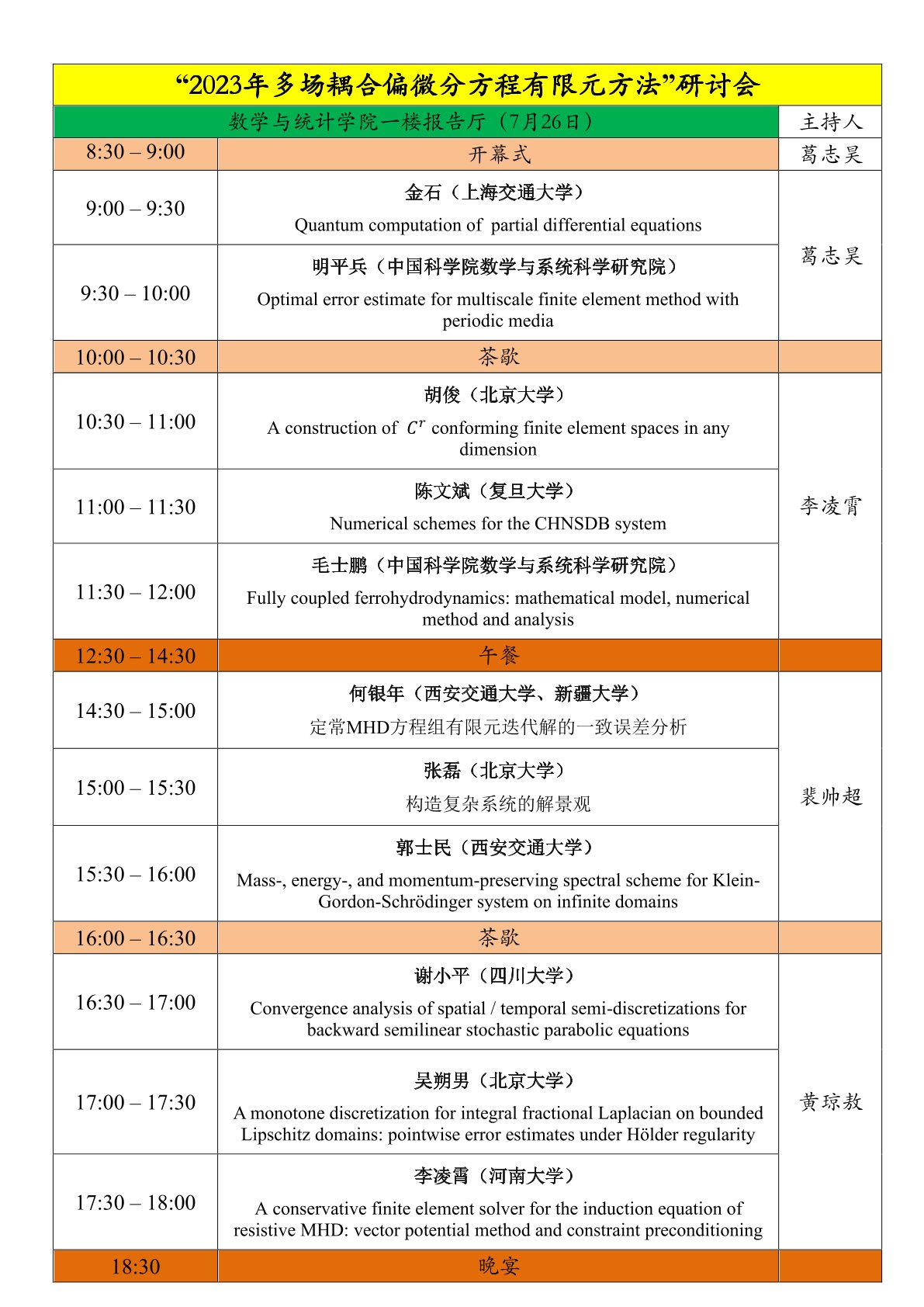 2023年多场耦合偏微分方程有限元方法研讨会日程安排