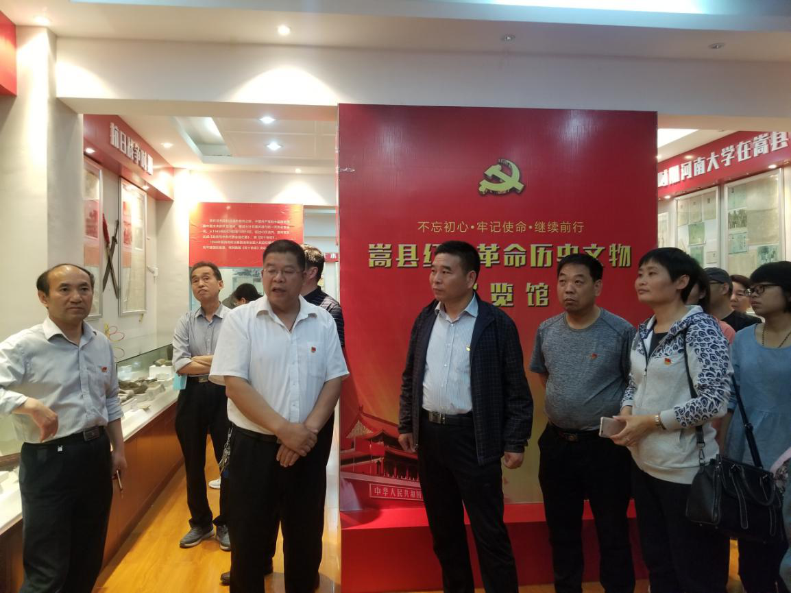 19日上午,在嵩县挂职副县长、我校纪委副书记张润泳、嵩县博物馆馆长王宪贞等的陪同下,一行人来到嵩县红色革命历史文物展览馆。馆中陈列着革命时期的一些历史文物和我校在嵩县办学的一些有纪念价值的物品。此次参观学习再次加深了大家对河大办学历史的了解和认识,坚定了党员同志们的理想信念。