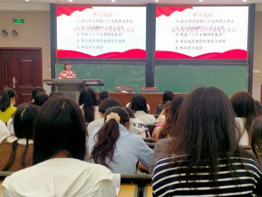 第一学习小组从过去十年我国所做的重要工作和新时代的伟大变革、开辟马克思主义中国化时代化新境界、中国共产党的使命任务、实施科教兴国战略、强化现代化建设人才支撑、青年强,则国家强等几个方面进行学习分享。