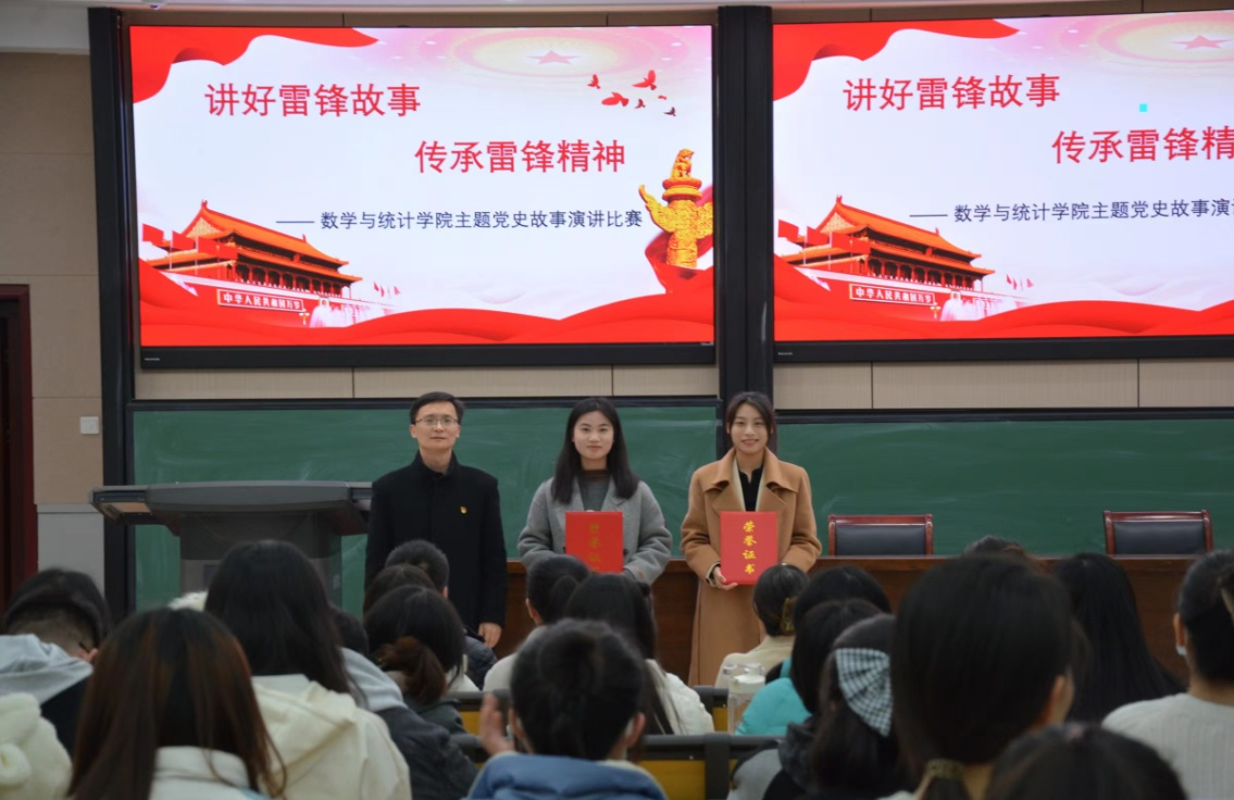 党委在南阶教室举行“讲好雷锋故事,传承雷锋精神”主题党史故事演讲比赛。学院党委副书记赵红磊、党办主任吴苏苏、学生党支部书记和各支部党员参加活动。