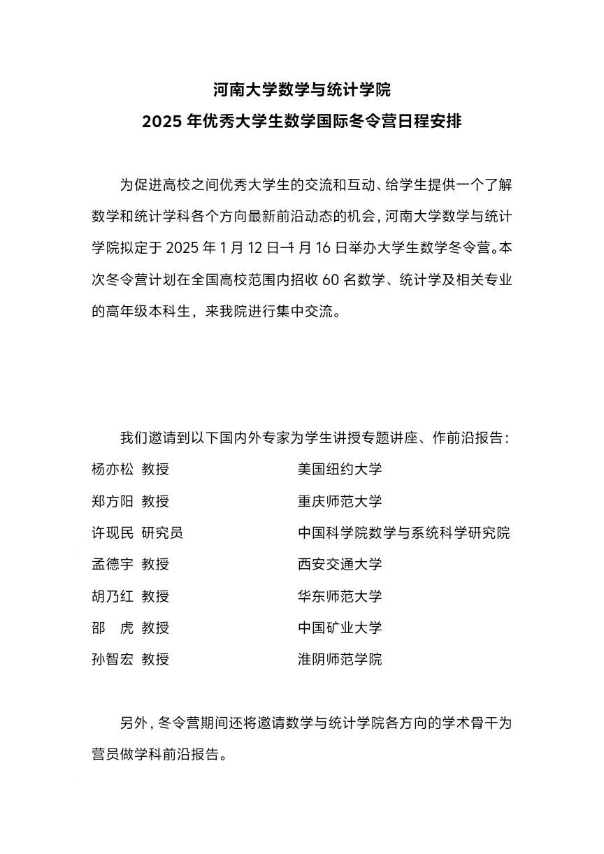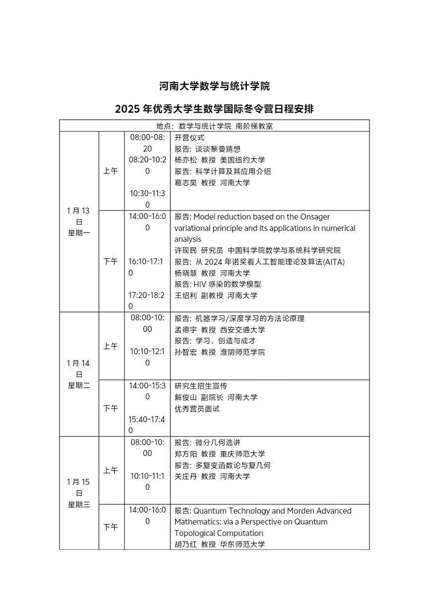 av麻豆 2025年优秀大学生数学国际冬令营日程安排