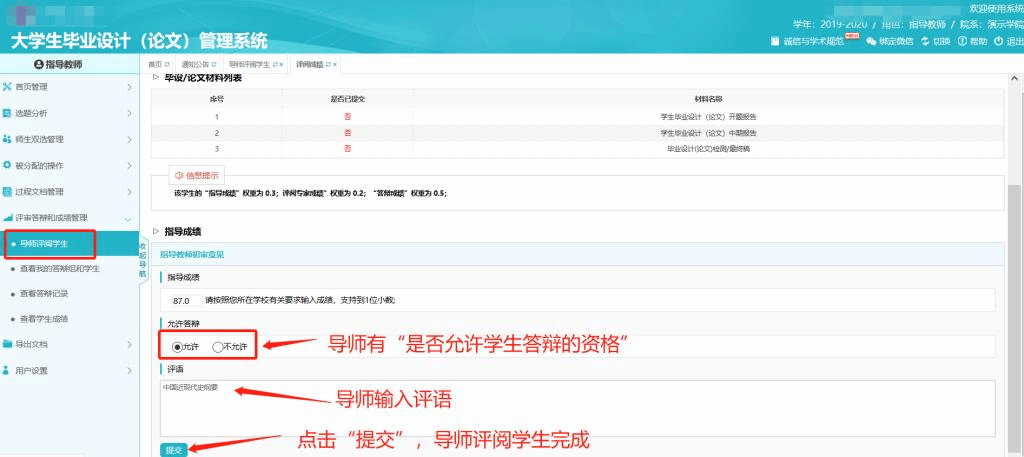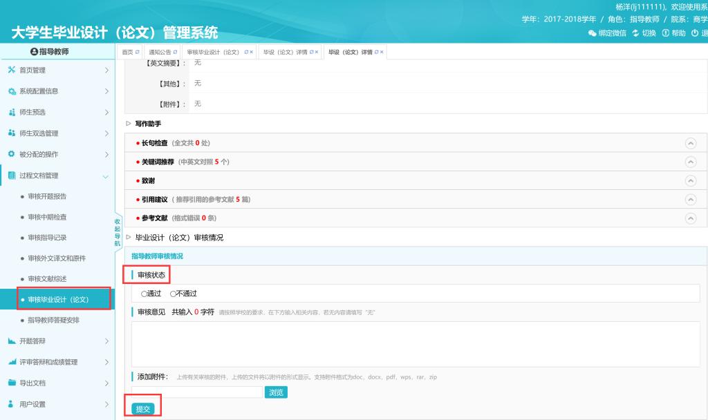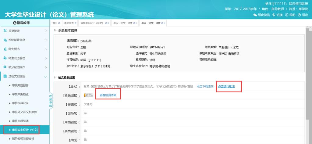 指导教师可根据检测结果以及内容进行在线批注、审核