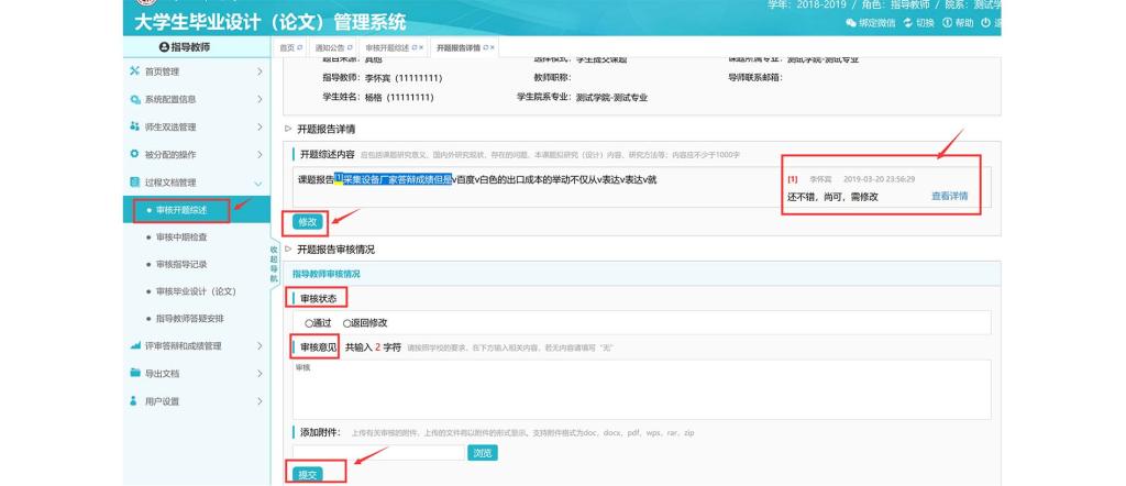 开题报告、中期检查、指导记录等过程文档的审核批注方式一致,以开题报告为例,其他类推