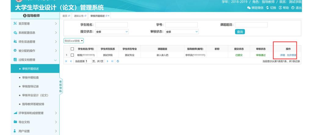 审核通过后,学生想要修改,点击“允许修改”授权即可