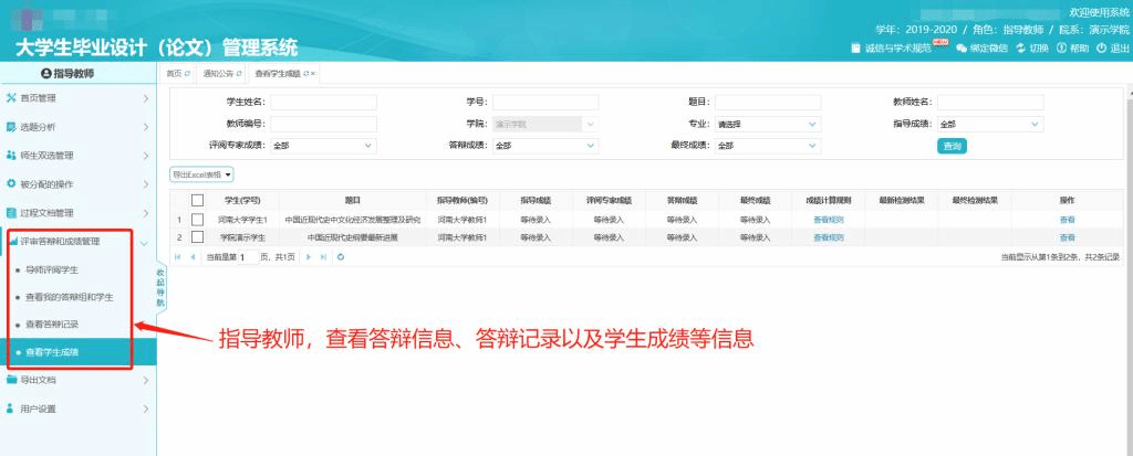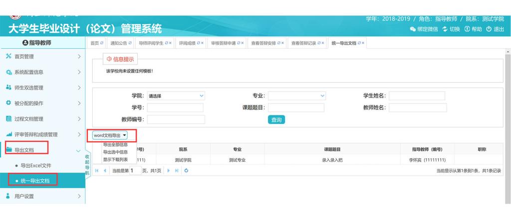 可导出所有指导学生的,或者部分学生所有过程文档电子版