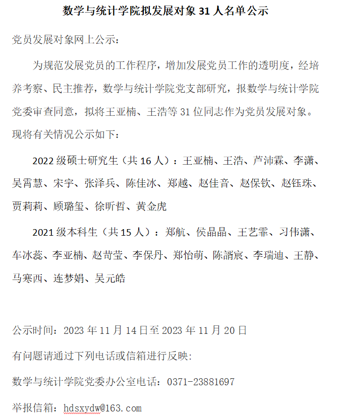av麻豆 数学与统计学与2023年度党员拟发展对象公示