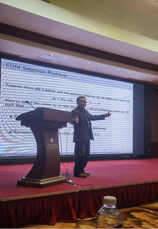 开幕式后,新加坡国立大学Kim-Chuan Toh教授、香港理工大学戚厚铎教授、上海纽约大学凌舒扬教授、浙江理工大学罗和治教授、香港理工大学袁雁城教授、华南师范大学陈艳男副教授、西北工业大学白建超副教授、武汉大学焦雨领副教授、北京交通大学罗自炎教授、天津大学张新珍教授、河南师范大学崔鲁宾副教授、天津大学黄正海教授、北京交通大学孔令臣教授、清华大学包承龙教授、深圳大学涂凯助理教授和河南财经政法大学刘子胜讲师分别做了精彩的报告,与台下专家学者进行了广泛深入的学术交流。在此次研讨会中,共围绕矩阵优化领域的最新研究进展、算法创新以及应用实践等方面进行了16场报告。与会人员就矩阵优化的理论基础、优化方法、数值实验以及应用前景进行了激烈的讨论和分享。大家积极提问、热烈互动,使得研讨会的氛围更加浓厚。各位专家学者的精彩报告,展示了矩阵优化相关的前沿动态,为我们带来了许多新的思考和启发,对于推动矩阵优化领域的发展具有重要意义。