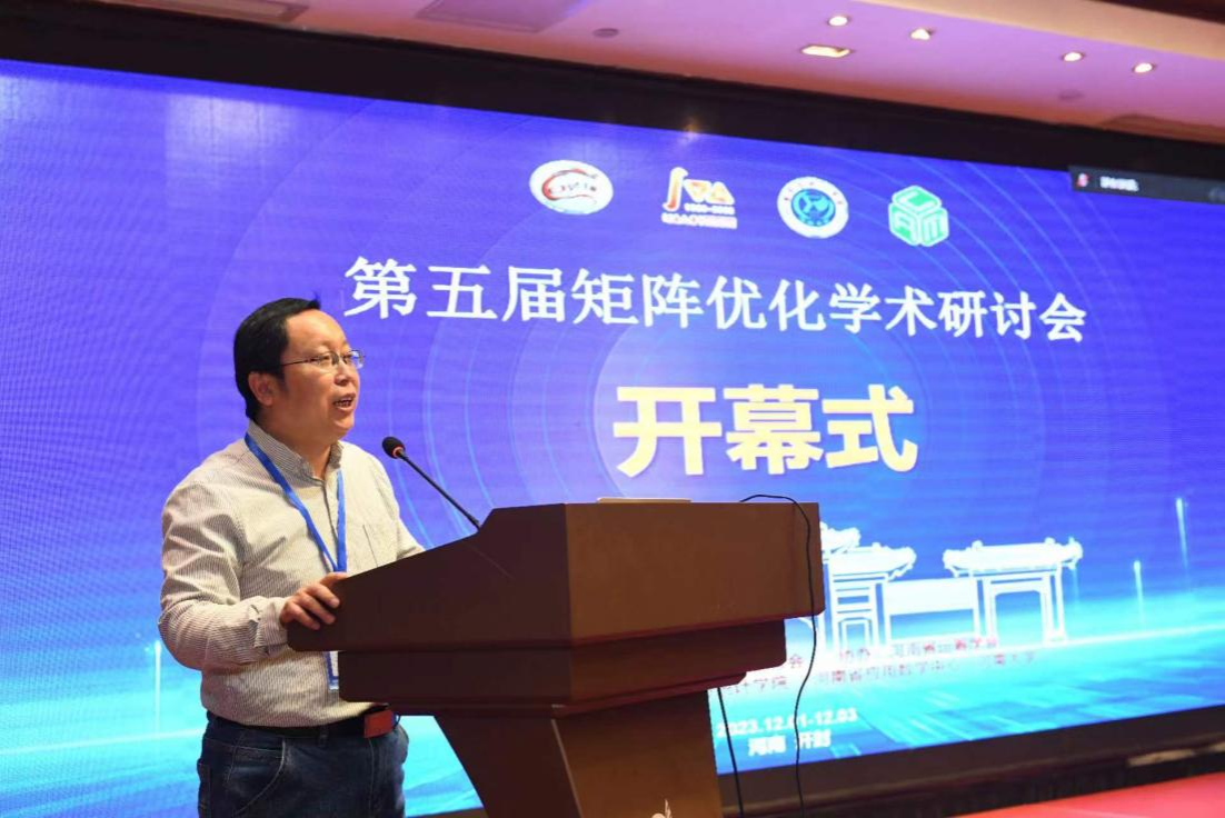 )承办,河南省运筹学会协办。本次会议围绕矩阵优化的前沿问题进行学术报告及交流讨论,议题主要包括矩阵优化理论及算法在机器与统计学习、数据与管理科学、张量优化等领域中的应用等,旨在加强国内外矩阵优化领域相关学者的相互交流与合作,提高青年教师学术交流能力与沟通能力。