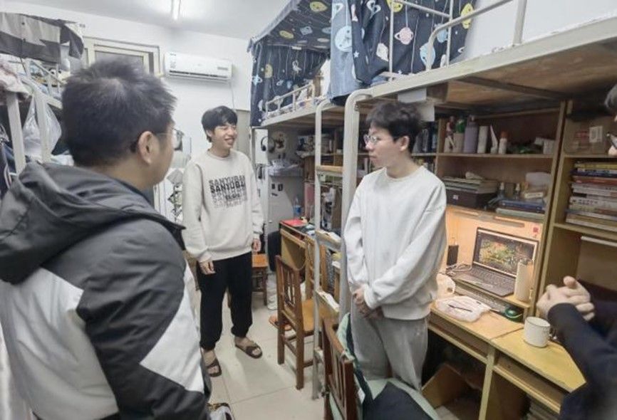 同学们热烈欢迎辅导员的到来,他们与辅导员就生活学习等进行深入交流,氛围融洽。同学们纷纷表示,要将老师们的关心转化为学习的动力,为实现自己的人生目标努力奋斗,为学院增光添彩。