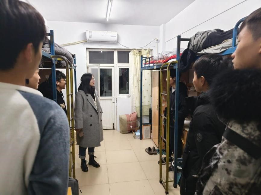 为了更好地深入学生群体,了解学生在近期天气骤冷情况下寝室生活的实际情况,规范学生在宿舍内的日常行为,提高学生安全防范意识,构建平安校园,12月11日晚,学院全体辅导员,不畏严寒,冒雪走进学生宿舍,与同学们深入交谈,倾听同学们的心声,耐心指导学生整理宿舍内务,全面排查学生宿舍安全隐患,共建安全文明和谐的宿舍。