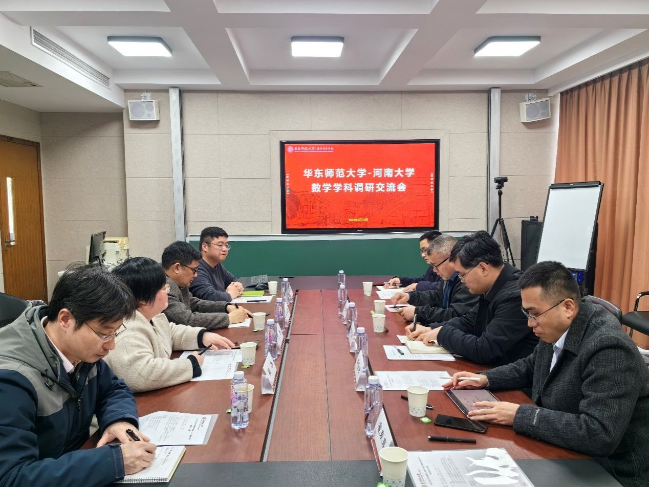 3月14日下午,调研组一行来到华东师范大学数学科学学院,数学科学学院党委书记贾挚、院长吕长虹、副院长程涛、罗栗等对调研组的到来表示热烈欢迎。双方各自介绍了学院相关情况,并期待双方在师范生培养、产学研合作与成果转化、资源拓展等方面加强交流、深化合作,实现互惠共赢,携手共同发展。