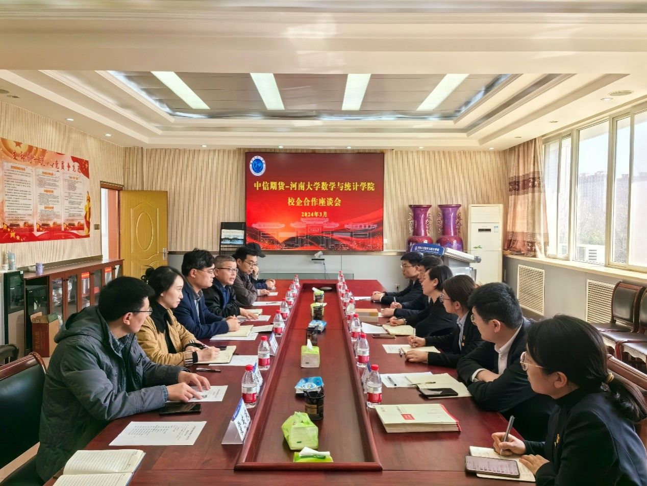 和中信期货在学院二楼会议室举行校企合作洽谈会暨签约仪式。中信期货河南分公司总经理时欣欣、机构部总监邓晓婷、产业部总监张继翔等一行6人,av麻豆