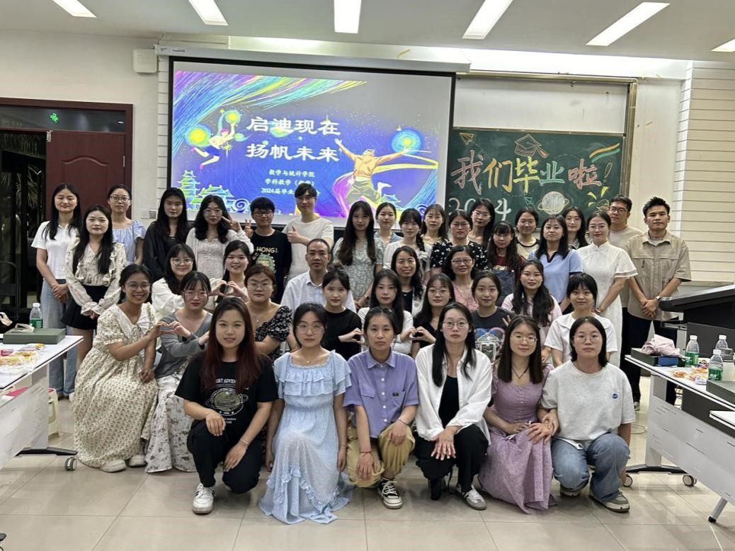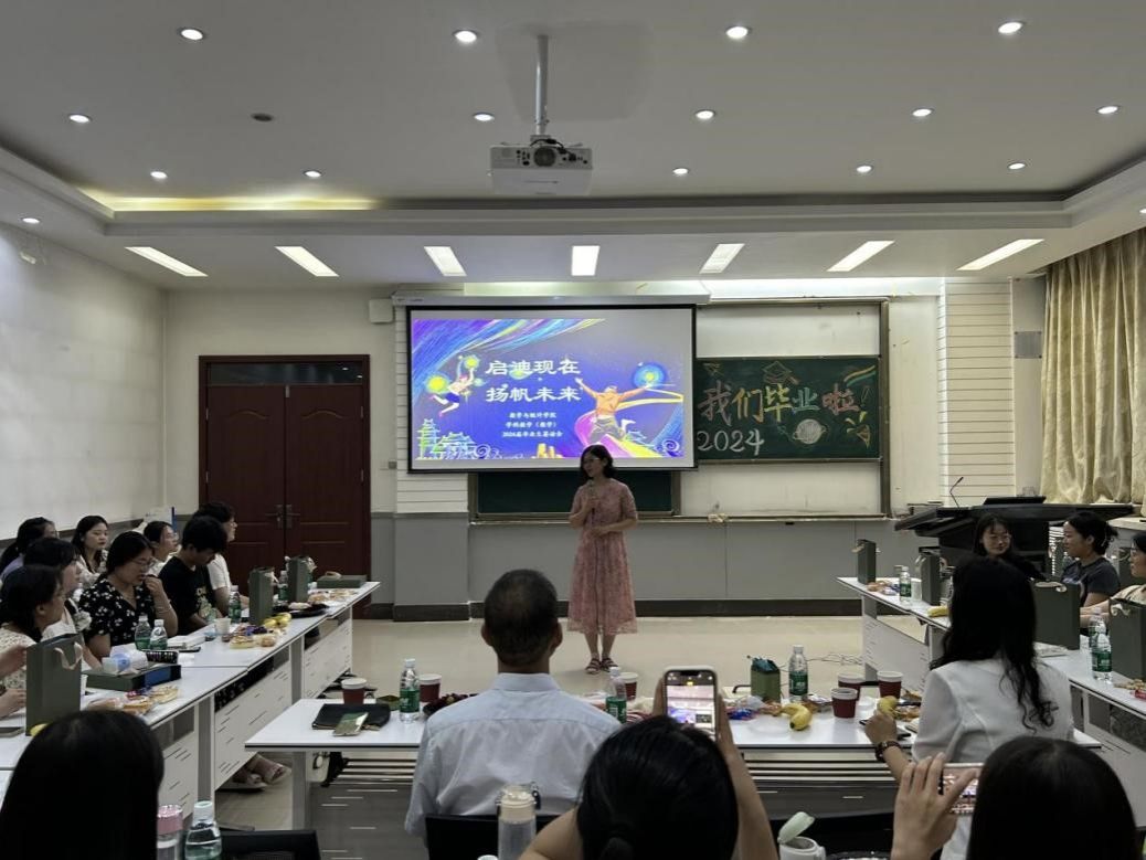 在一楼报告厅开展“启迪现在,扬帆未来”茶话会活动,参会人员有2024届学科教学(数学)毕业生、数学教育类在校研究生,特别邀请职占江、范利萍、张玉环等导师代表,本次活动由张玉环和2023级学科教学(数学)班长张泽奇组织,2023级学科教学(数学)宋翔宇主持。大家共聚一堂,欢送即将毕业的研究生,共话职前教师成长。