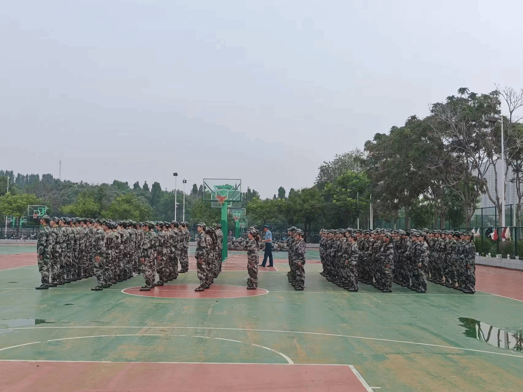 校园到处洋溢着军绿色的风采