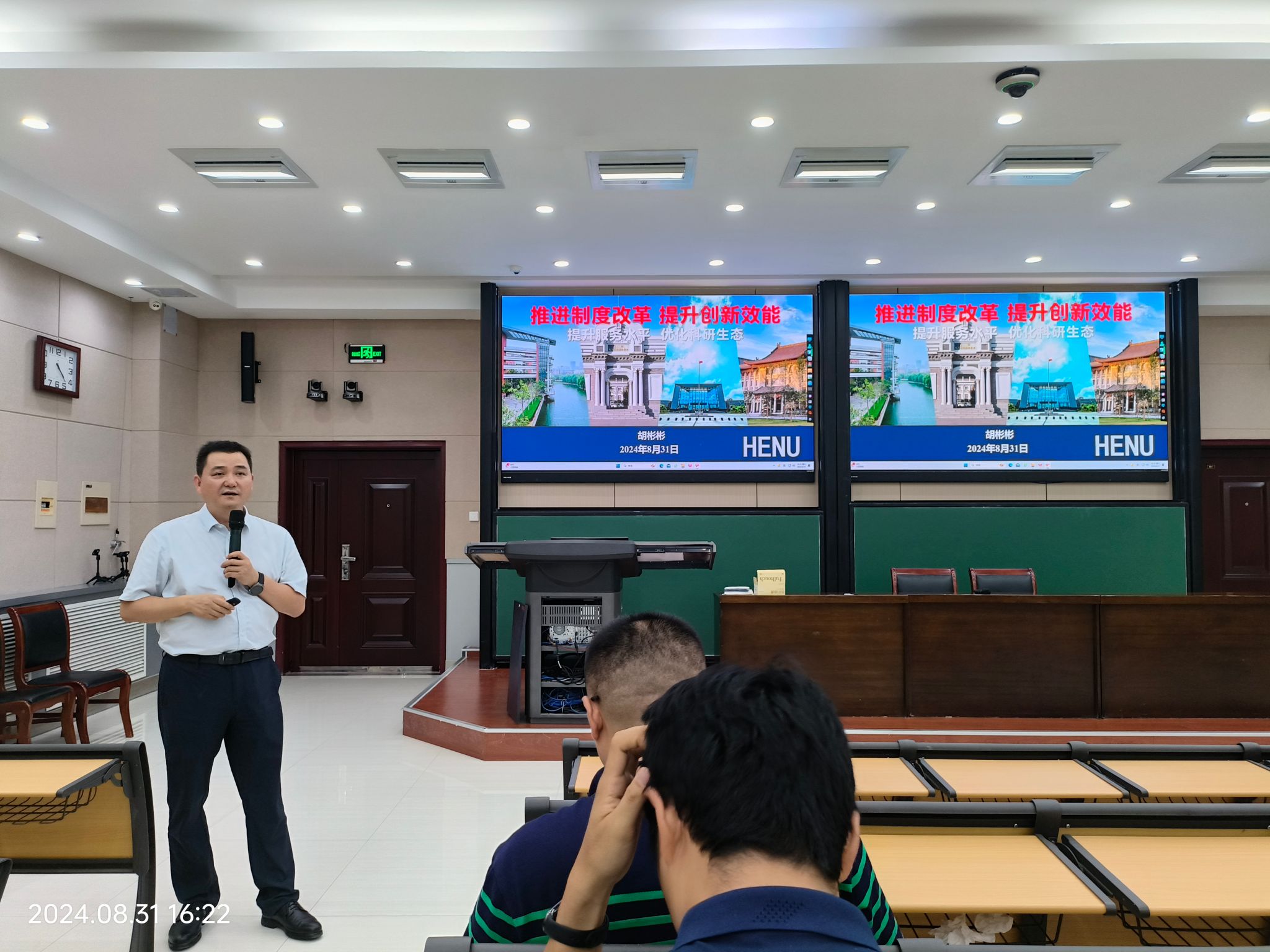 会后,校科学技术研究院院长胡彬彬结合学校暑期工作会相关内容和分管工作,从国家战略导向、科研组织范式、项目申报注意事项等方面分享了自身对科技创新的理解和体会,也对学院科研工作和教师个人成长提出了宝贵的意见建议。