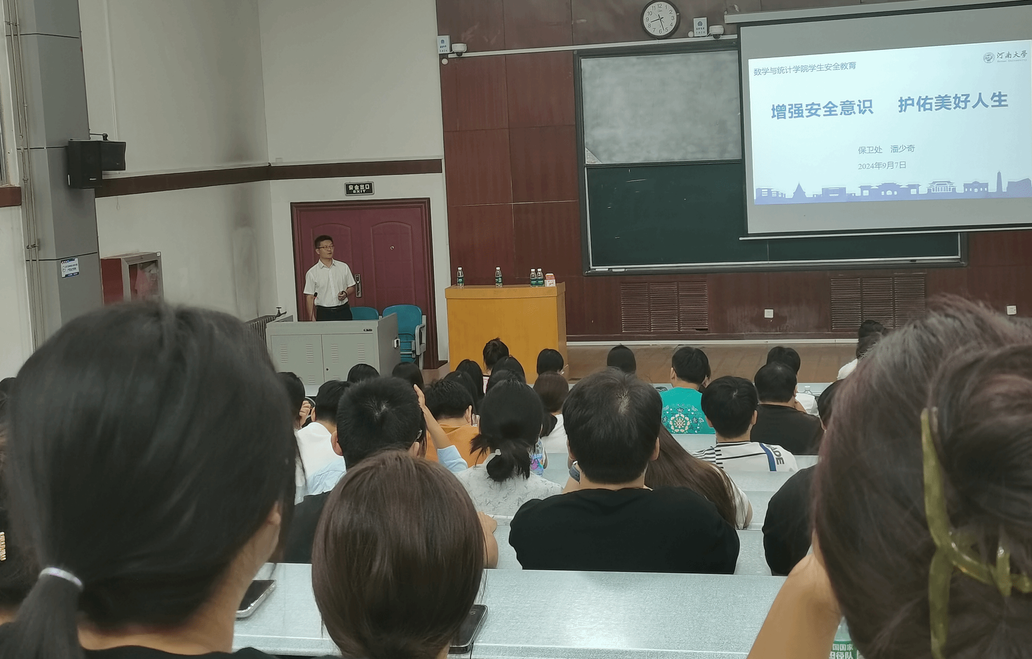 潘少奇通过身边的典型案例,从六个方面进行了校园安全教育,提醒同学们一定要树立安全意识,特别要注意防范目前多发的网络和电信诈骗,以免造成不必要的经济损失。