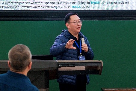 学术报告环节,专家们围绕机器学习理论、算法及应用展开交流,先后带来了“深度学习泛化与安全的数学理论”、“MLR-SNet (Meta-LR-Schedule-Net): Transferable LR Schedules for Heterogeneous Tasks”、“人工智能与科研范式变革:从实践到理论”、“Unsupervised Transfer Learning via Adversarial Contrastive Training”、“Understanding Data by Graph Theoretic Approaches”、“高精度地图制作中的智能算法与数学理论”、“Low-rank Matrix/Tensor Regularization Based Models for Image Restoration”等7场精彩纷呈的报告。报告内容前沿、深入浅出,现场与会师生讨论热烈,学术交流气氛活跃。