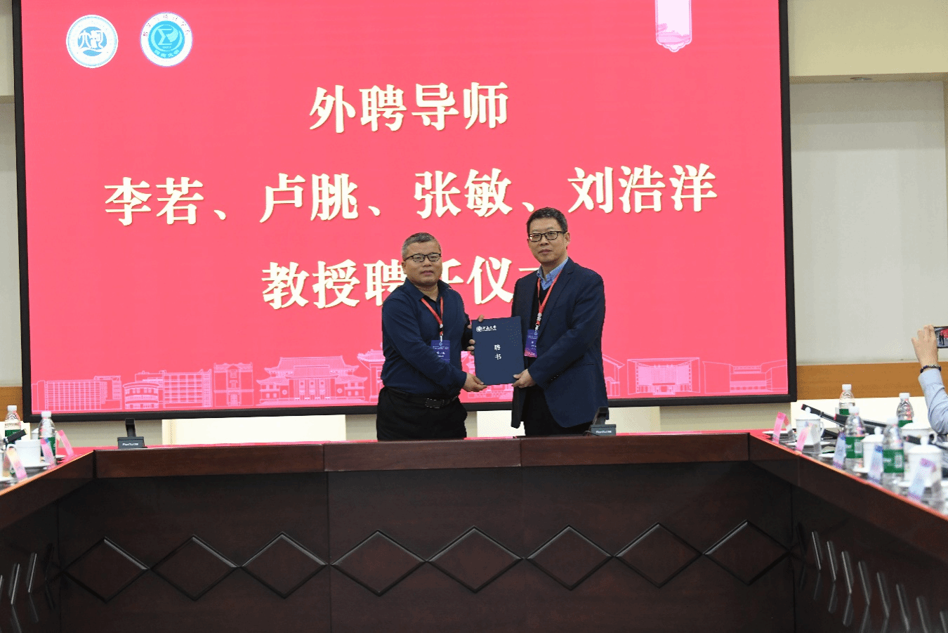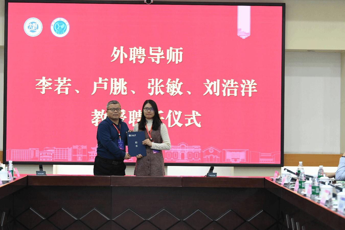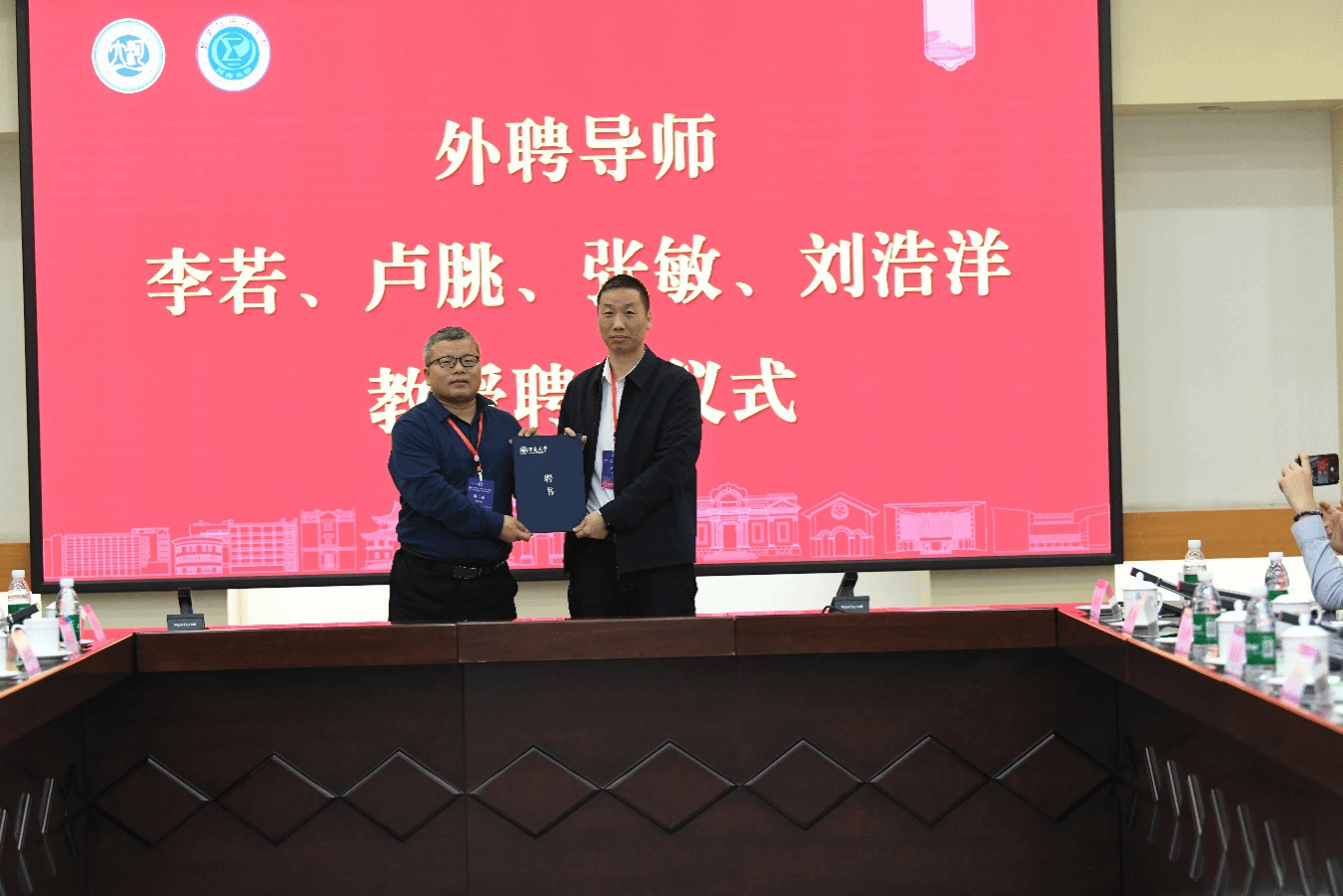 随后,韩小森和李若共同为“北太天元校企研发中心”揭牌,标志着这一校企合作平台正式成立。韩小森代表学院为李若、卢朓、张敏、刘浩洋教授颁发了外聘导师聘任证书。
