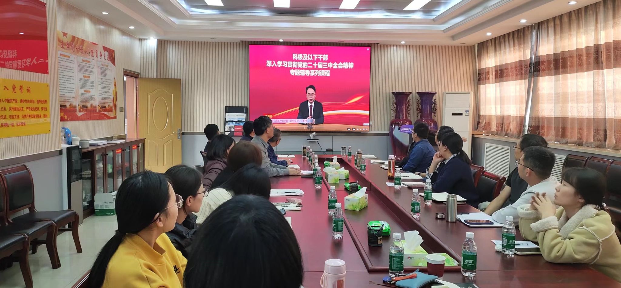 根据学校《关于开展科级及以下干部、党员学习贯彻党的二十届三中全会精神培训通知》要求和安排,与会人员共同观看学习了由中央党校(国家行政学院)研究室主任沈传亮教授主讲的“深入学习贯彻习近平总书记关于全面深化改革的一系列新思想、新观点、新论断和党的二十届三中全会精神”视频课程。