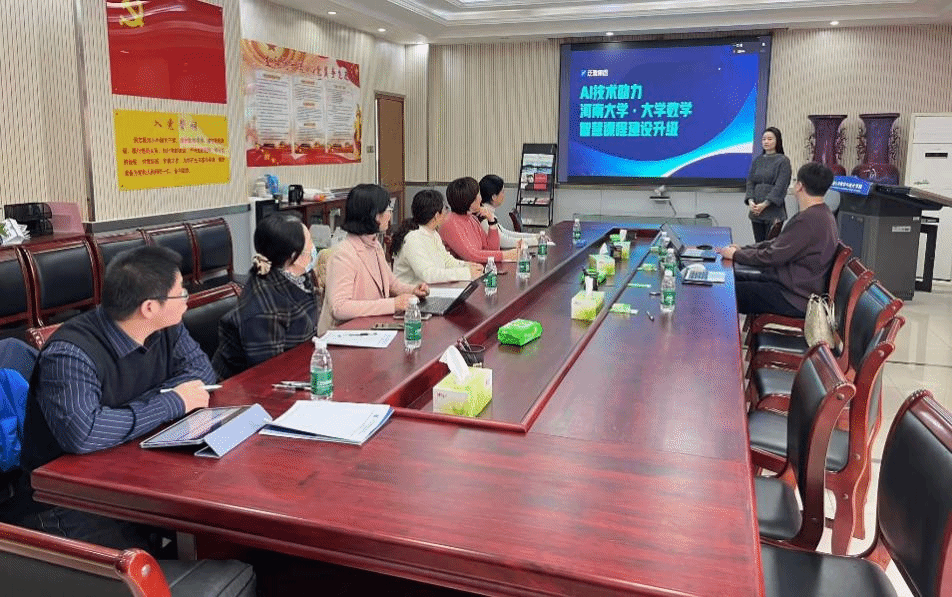 教师中心副主任王波主持,学院教务办公室主任尹彦彬、数学教育系主任汪叶及部分教师代表参加。研讨会邀请超星泛雅集团河南分公司课程建设项目经理王祥对超星智慧教学平台的AI应用模块进行介绍和操作演示,为大学数学智慧课程建设提供个性化指导建议,与会教师代表就高等数学、线性代数等课程中AI赋能教学问题展开深入讨论,针对数智化课程与数字教材制定详细的建设方案。