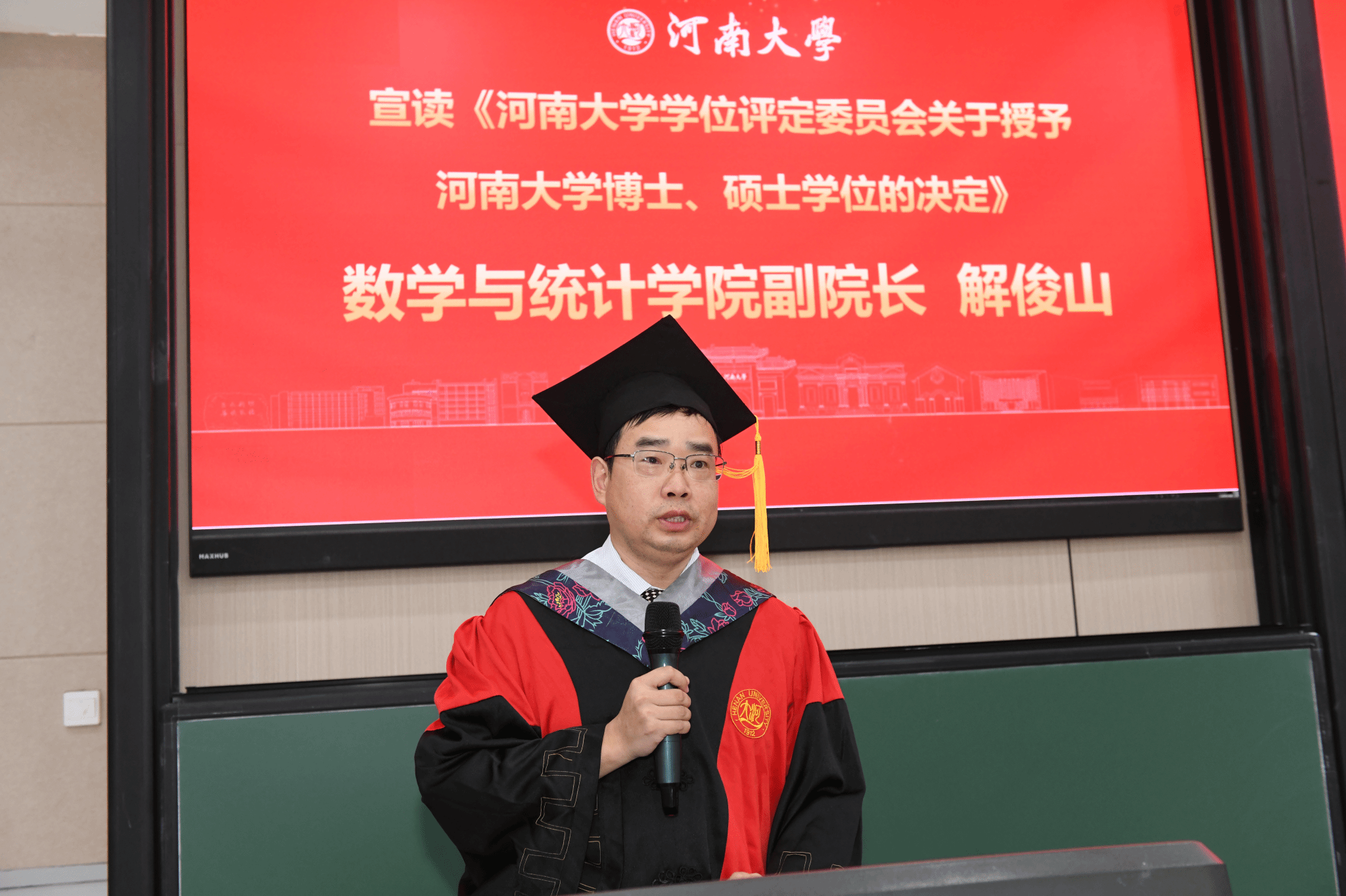 韩小森对毕业生们圆满完成学业表示祝贺,并高度评价了毕业生们在校期间取得的丰硕成果,寄语大家要永葆求真务实、化繁为简、创新突破、经世致用、坚韧不拔的数学精神品格。毕业是终身学习的新起点,他勉励毕业生们带着河大人的智慧与担当,“找到人生的最优解,谱写壮丽的生命华章”,并表示母校永远是学子的精神家园和坚强后盾,欢迎常回家看看。