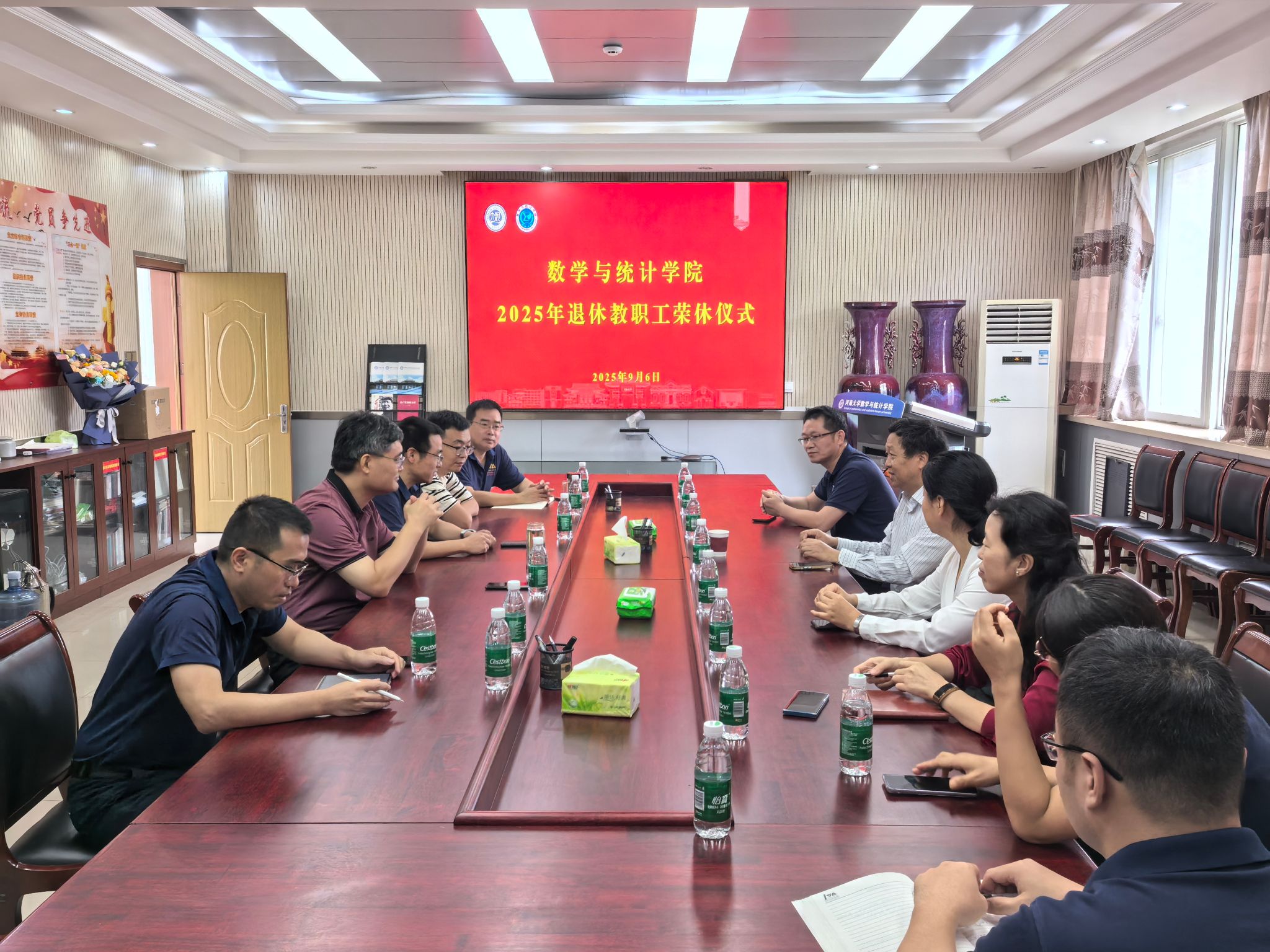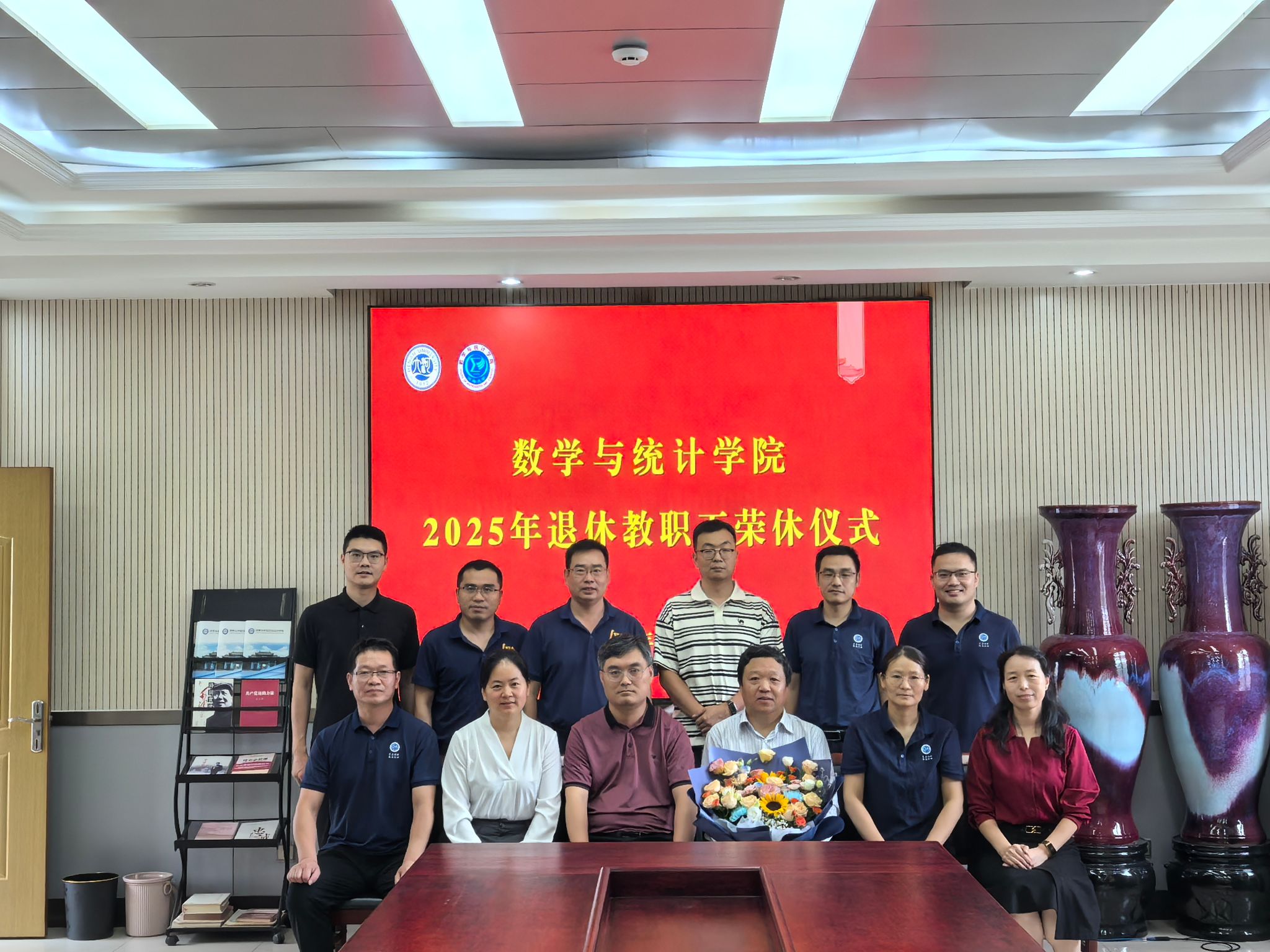 在二楼会议室举行2025年度退休教职工荣休仪式。荣休教师刘洪星及学院领导班子成员、教师代表出席,仪式由副院长杨一平主持。