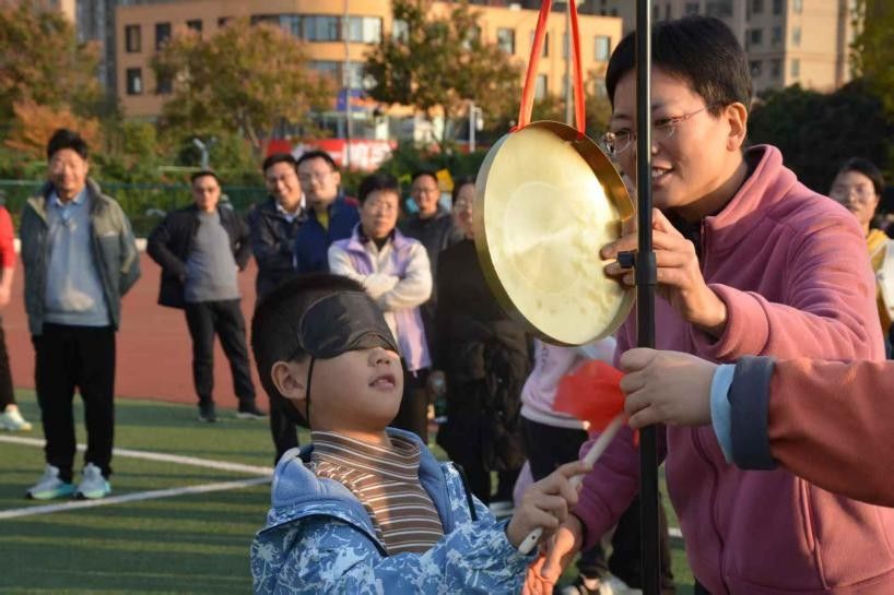 本次教职工趣味运动会共设乒乓球竞速、保龄篮球、丢沙包、蒙眼敲锣等四个项目。乒乓球竞速中,老师们化身“国球高手”,用平日握粉笔的手玩转球拍,绕杆翼翼前行,彰显极佳平衡感,尽显可爱活力。保龄篮球赛场,老师们弯腰、瞄准、掷球,一系列动作行云流水,瓶子应声而倒的瞬间,欢呼声四起,溅起的笑声与漾开的轻松,便是此刻唯一的主题。“向左,再向左一点!快敲啊!”,在“方向感大考验”的蒙眼敲锣项目中,老师们蒙上双眼,手执鼓锤,摇摇晃晃走向锣鼓,观众的欢笑声和清脆的“锣声”相互交织,奏响欢快的乐章。一场释放压力与拥抱纯真的丢沙包旅程,让老师们重拾起童年记忆,点燃了蕴含在每个人心中最纯真的美好!