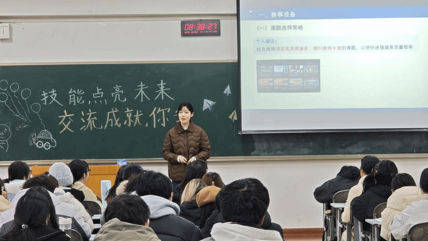 最后,程永胜老师高度肯定了教学技能竞赛对提升学生专业素养与实践能力的重要意义,强调荣誉的背后是日复一日的辛勤付出,勉励同学们树立终身学习理念,持续拓宽学术视野。张玉环老师对四位同学毫无保留的分享以及刘依同学的精彩主持表示诚挚感谢,并希望全体参会同学以此次分享会为契机,吸收借鉴宝贵经验,在后续学习中查漏补缺、提升自我,为未来参与教学技能竞赛、规划职业发展方向筑牢根基。