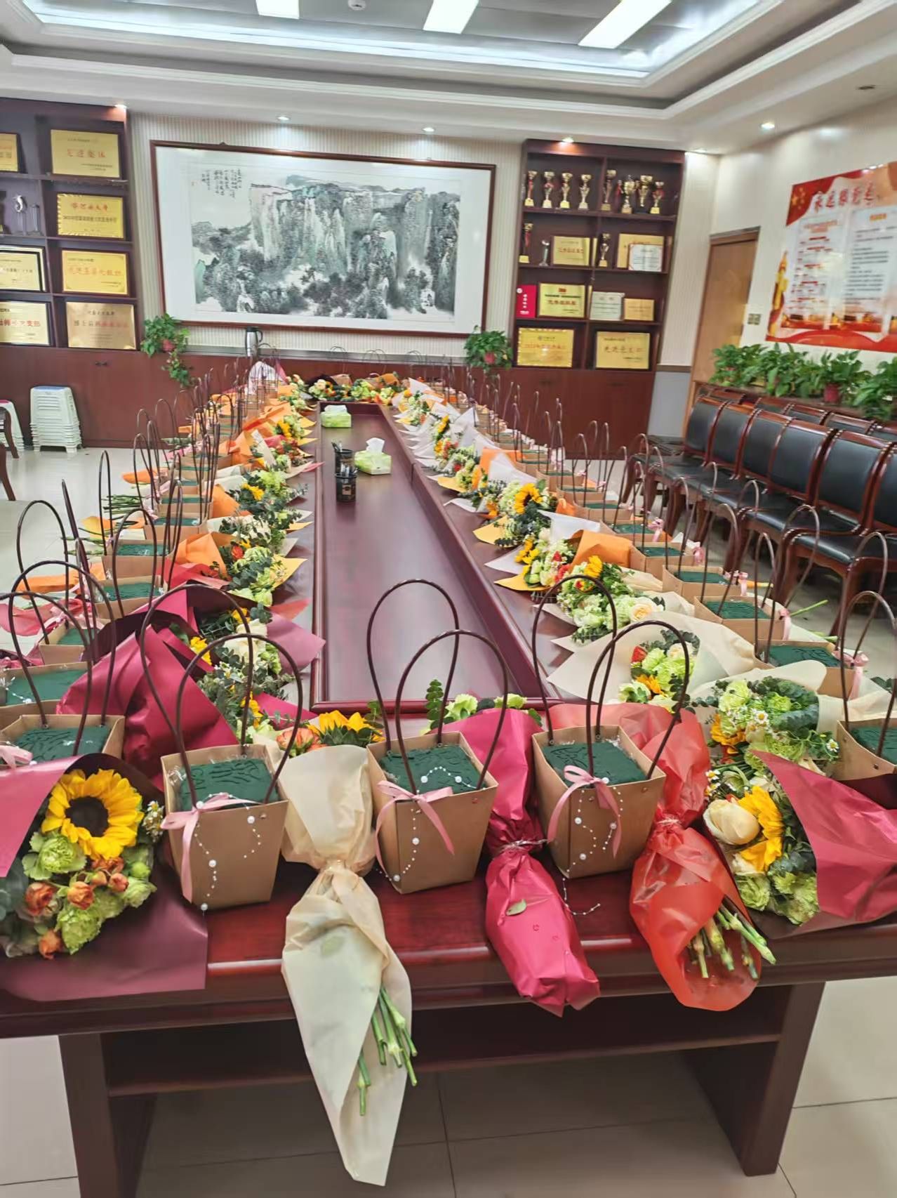 在创作环节,女教职工们兴致盎然、巧手创作。大家认真选材、精心修剪、创意搭配,将零散花材巧妙组合,在一插一剪、一摆一饰间,把春日生机与美好心意融入作品之中。平日里深耕讲台、潜心科研的她们,此刻化身花艺创作者,在轻松愉悦的氛围里交流心得、切磋技艺,现场欢声笑语不断,尽显巾帼风采与生活雅趣。一件件错落有致、清新雅致的插花作品次第呈现,承载着对生活的热爱与对节日的美好祝愿。