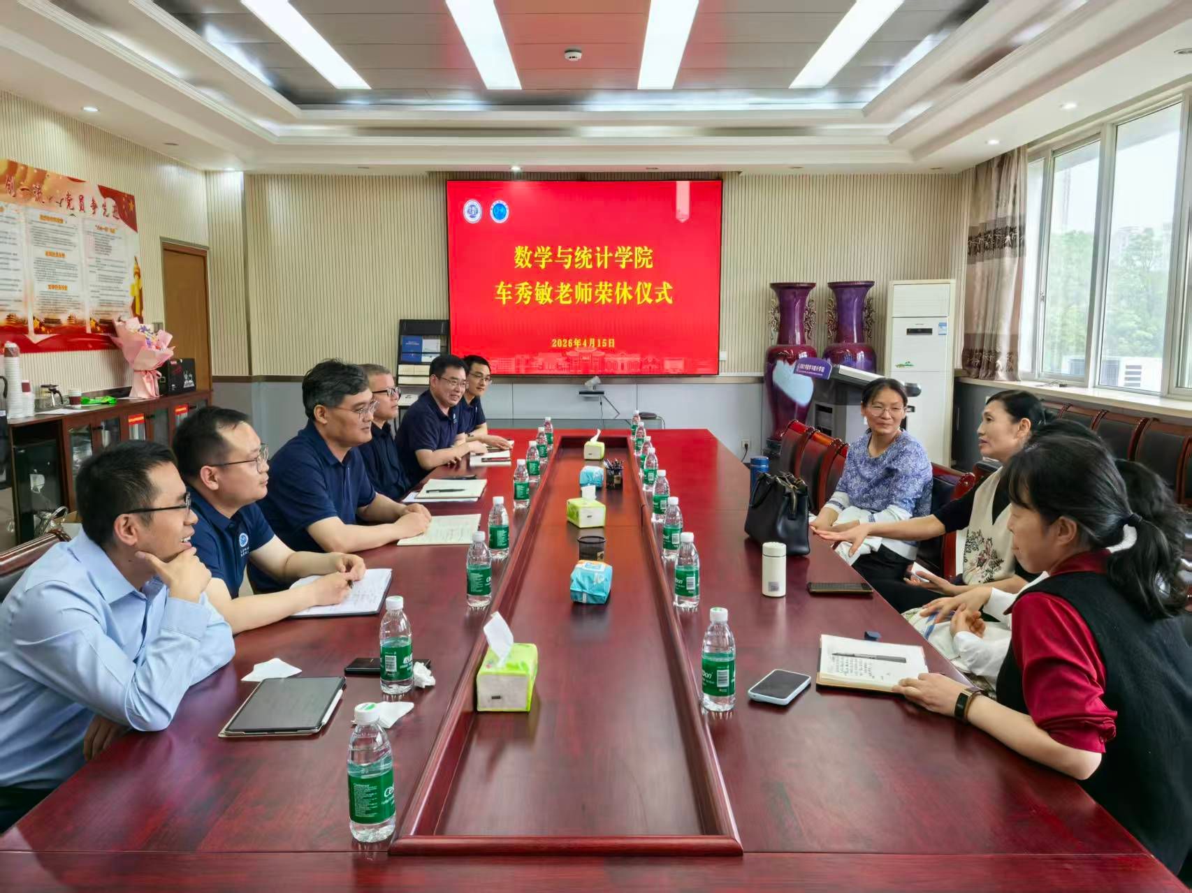 在二楼会议室举行2026年度退休教职工荣休仪式。荣休教师车秀敏及学院领导班子成员、教职工代表出席仪式,仪式由副院长杨一平主持。