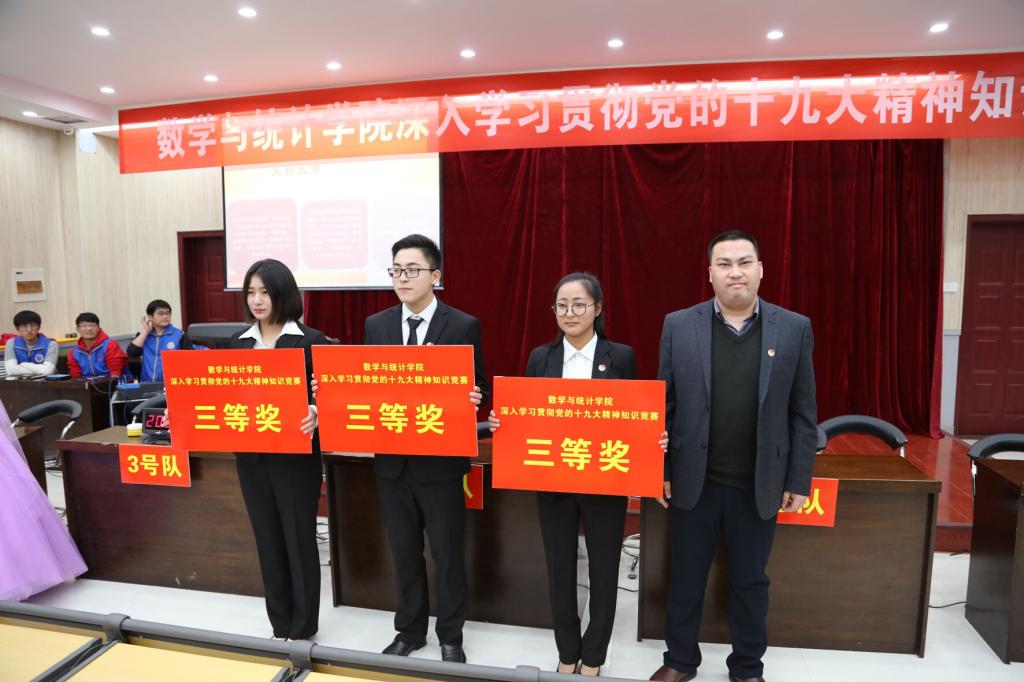 据悉,近期,学院党委根据校党委统一部署和要求,以收看直播、集中学习、座谈研讨、听取宣讲报告、举办知识竞赛等方式,在师生中持续掀起深入学习贯彻党的十九大精神的热潮。本次竞赛是学院深入学习贯彻党的十九大精神系列举措之一,以“不忘初心跟党走,青春建功新时代”为主题,旨在以赛促学、以学促做,激励全院党员干部群众更好地为学院事业发展以及学校“双一流”大学建设贡献数学智慧和力量,赢得了广大师生的广泛参与和普遍好评。