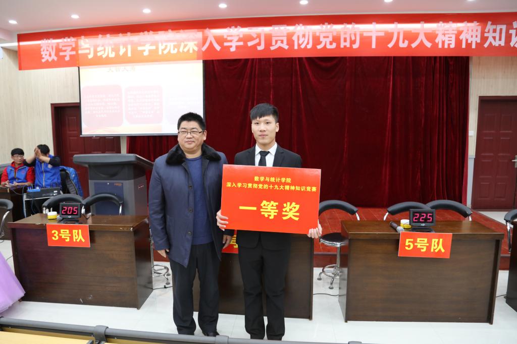 赛前,学院党委为全体党员配发了党的十九大报告、新修改的党章等材料,为知识竞赛做好了充分准备。通过笔试选拔,共有研究生2015级学生党支部等6个代表队闯入决赛。决赛现场设置“稳扎稳打”、“势在必得”、“当仁不让”、“大智大勇”四个环节,综合检验参赛选手党的理论知识储备、现场应变能力和团队协作水平。18位选手凭借对十九大报告、新党章等的全面学习和深刻理解,对竞赛题作了精彩解答,赢得了现场师生的阵阵掌声。在抢答环节中,参赛选手反应迅速,积极抢答,充分展现了学习党的十九大精神的丰硕成果。在“大智大勇”风险题环节,参赛选手沉着冷静,理性应对,集中体现了有勇有谋的数学智慧。