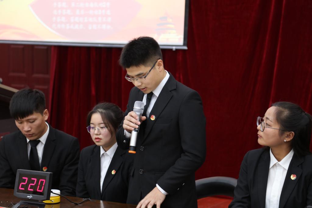 11月30日晚,我院深入学习贯彻党的十九大精神知识竞赛决赛在学院南阶梯教室举办。校av麻豆副主任党鸿军,学生工作部副部长、学生处副处长杨江涛出席并担任仲裁,学院师生党员和部分入党积极分子参加活动。竞赛由学院学生辅导员芦海燕、2017级学生刘锐主持。