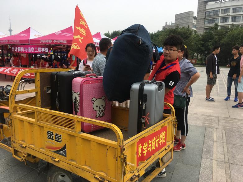 8月31日清晨,位于学校西大门和学院大厅的两个新生接待站已准备到位。新生们接踵而至,身着蓝色和红色马甲的志愿者们开展一条龙服务,为新生做报到引领、搬运行李、介绍校园等服务。资助服务站的志愿者们耐心地为新生讲解相关事宜,部分报到过的新生积极地参与到迎新活动中。从新生报到确认、上交录取通知书到一卡通注册,每一项报到流程都井然有序。学院通过微信等新媒体沟通方式,组织老生在线为新生答疑解惑。