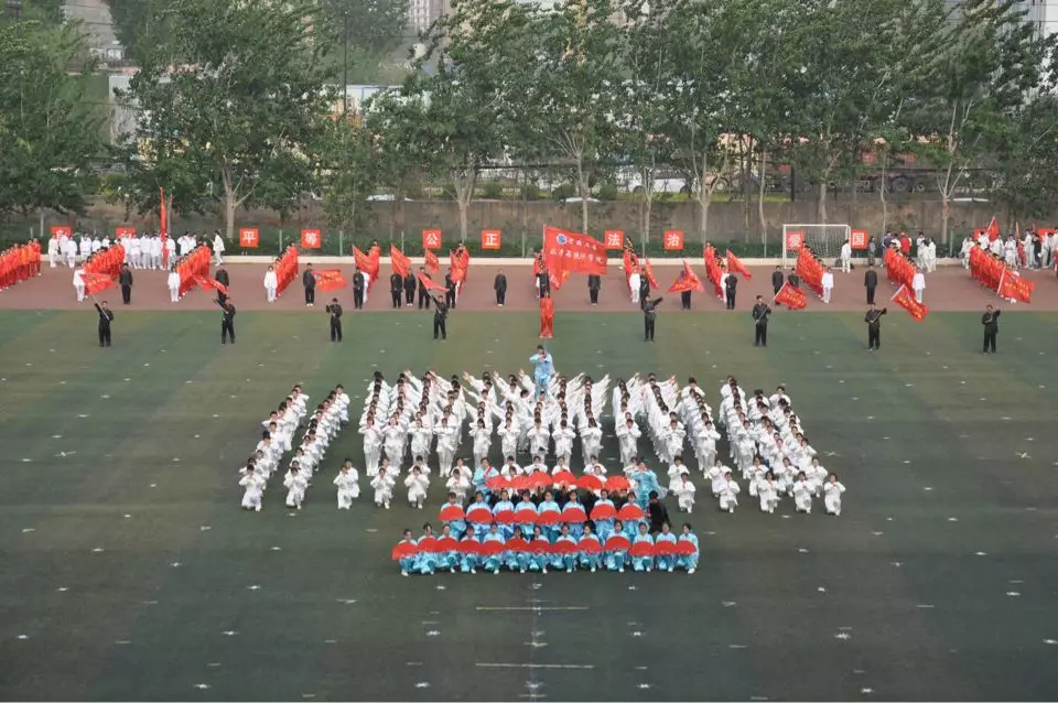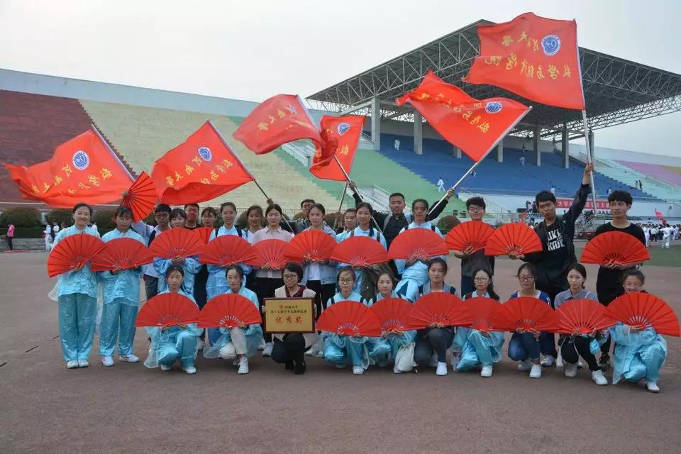 除了整齐划一的孙式太极拳段位制表演,我院参赛队伍还将创新思维与传统文化相结合。将舞扇、舞旗特色元素融入太极拳表演中,以全体队员绕圈入场的方式,尽显其中设计之美,充分彰显我院特色。表演过程中,取得了现场观众的阵阵呼声。