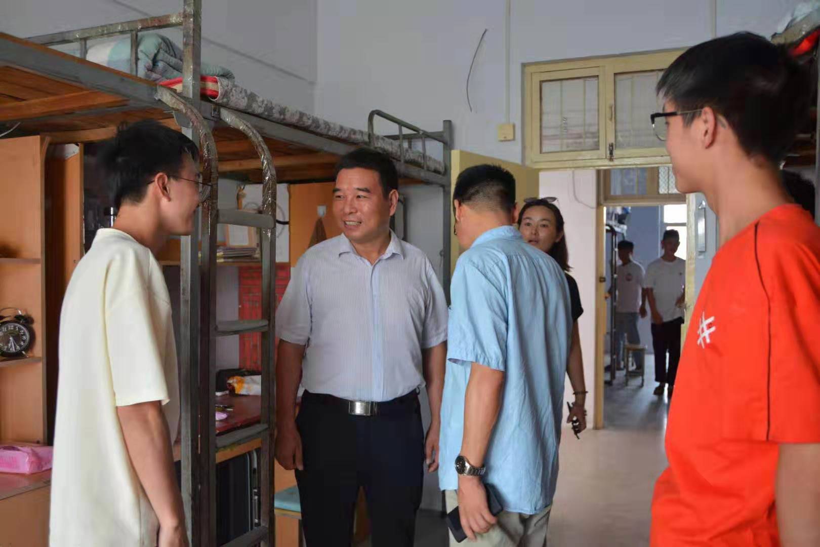 9月1日下午,学院党委书记史富强带领学院迎新工作小组走访本科新生宿舍进行慰问。在宿舍里,学院领导与新生进行了亲切的交谈,仔细询问了他们的住宿状况和新学期规划。学院领导重点强调了安全问题,希望同学们要提高安全防范意识,不要夜间单独外出,不要轻易相信推销人员,以免上当受骗。宿舍同学之间一定要互帮互助、和谐相处,营造温馨、舒适的生活环境,助力学业。