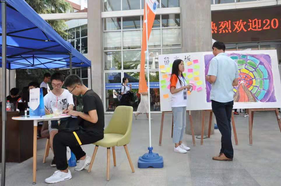 本次迎新工作分别在大西门、学院楼、南苑五号楼、华苑宿舍楼外设立了四个接待站点。前来的新生会在身穿红色小马甲的志愿者带领下来到报到点进行报到注册。同时在报到处设有茶水休息区,报到结束后,志愿者们还会为新生搬运行李,成为学校中一道靓丽的风景线。今年还设有系列特色活动一是“时光留言板”,新生们可于报到期间在留言板上写下对未来的展望,然后家长和新生在合影展板前拍照留念。二是“我来帮你解疑惑”,学院宣传部学生记者对新生及家长进行采访答疑。三是“我来带你看河大”,学长学姐带领新生熟悉校园环境。“注册可刷脸、行李有人提、到处有接待····”学院畅通办事渠道、简化办事程序,提高服务质量,为新生提供数字化、人性化、便捷化的周到服务,受到家长和新生的一致称赞。