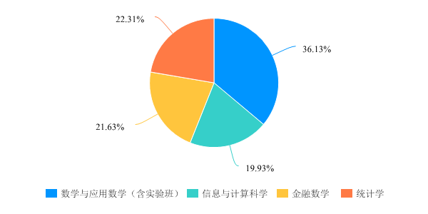 本次调查共收到学生有效问卷883份,调查学生主要为2017级、2018级和2019级本科生,涵盖学院开设的四个本科专业,其中数学与应用数学专业(含明德计划实验班)占36.13%,信息与计算科学专业占19.93%,金融数学专业占21.63%,统计学专业学生占22.31%。