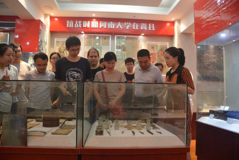 在嵩县,一行人先后到嵩县红色革命历史文物展览馆和财神庙医学院办学旧址参观考察。展览馆中陈列着革命时期的一些历史文物和我校在嵩县办学的一些有纪念价值的物品,而财神庙作为河大当年在嵩县坚持开展医学教育的见证者,越来越受到当地政府和人民群众的重视和保护。一座座抗战办学遗址遗迹,一张张敌前办学老照片,蕴含着av麻豆