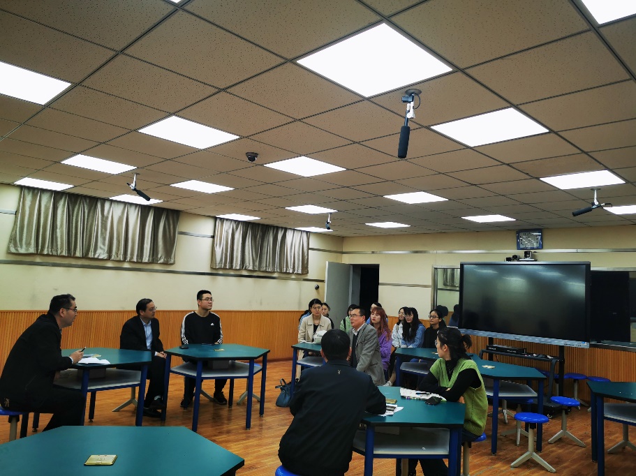 附中,教务处主任李俊义,数学教研组长杨红朝等数学组相关老师与学院师生进行了座谈,李俊义结合历届学生实习情况,对本次到校实习的12名学生提出了具体要求,希望同学们好好把握教育实习机会,要学会适应学生到教师的角色转变,踏实用心,积极主动,在自身教学技能和学生管理能力方面进行快速提升。杨红朝为实习生分配了指导老师,并对实习工作的具体事宜做出了详细安排。解俊山对河大附中高度重视实习工作、精心安排实习活动深表感谢,要求同学们珍惜宝贵的学习机会,严格按照学校要求,最大程度地锻炼提高自己的教育教学能力,为今后走上教学工作岗位奠定坚实的基础。