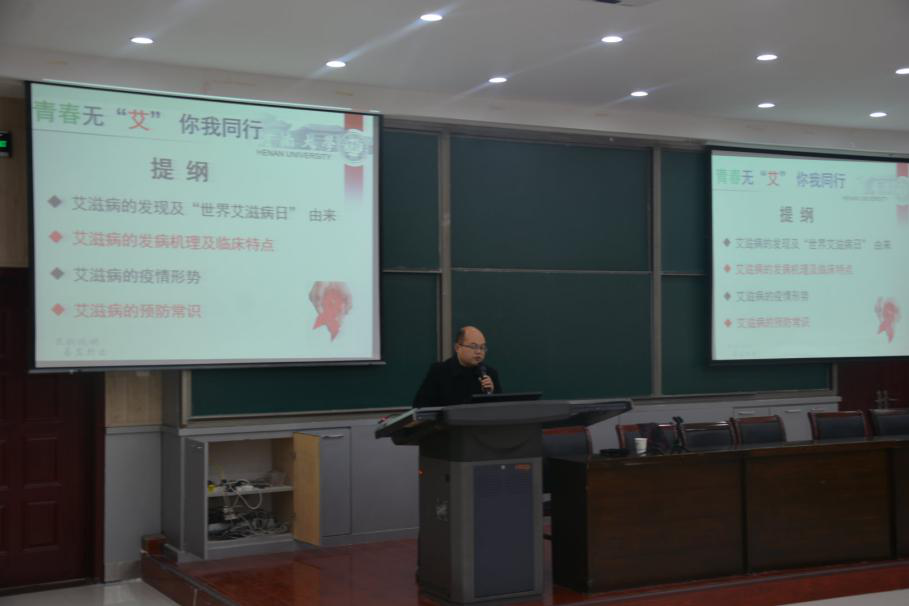 12月3日下午,我院于南阶教室开展了大学生艾滋病防疫知识讲座。此次讲座是由校医院面向数学院全体学生开展的以“青春无‘艾’,你我同行”为主题的健康知识宣传活动。校医院副院长张书申为主讲人,我院各年级部分学生参与听讲,讲座由2020级辅导员许佳佳主持。