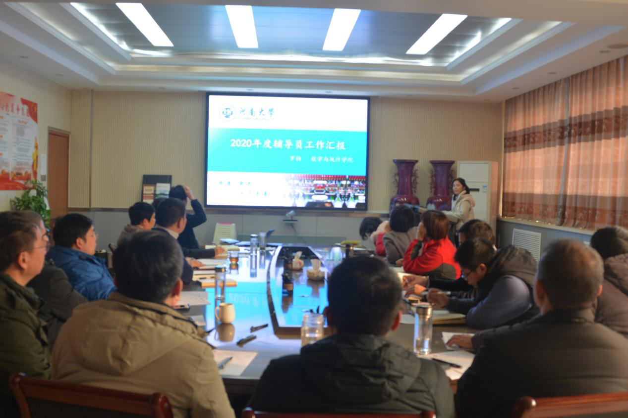 随后,五位辅导员通过PPT展示,对2020年的工作进行了总结汇报,认真梳理了一年来在思想政治教育、学生日常管理、疫情防控管理、党团组织建设、资助帮扶、评优奖先、学风班风创建、学生队伍培养等方面所做的工作,并分享了工作中的感悟和收获。