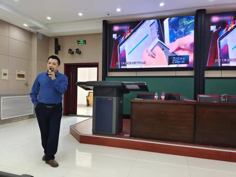 报告会上,谷燕兵介绍了我国网络行业发展、网络安全现状分析、身边的网络安全问题、全面构筑安全保障体系等内容,以精准的数据、详实的案例、生动的语言向与会师生介绍了网络安全的重要性。并结合具体的案例,分析了网络诈骗套路、网络攻击手段、勒索病毒入侵和信息数据泄露等网络安全问题对国家、社会和个人造成的重大危害,多层次、多角度剖析了网络安全事件发生的特点和防护措施。特别给老师和同学们讲解了校园常见网络诈骗和信息泄露的防范措施以及日常使用电脑、手机、wifi时的网络安全注意事项。他希望广大师生要在学习、工作和生活中提高网络安全意识、增强法制观念、规范网络使用,切实提高网络安全能力。