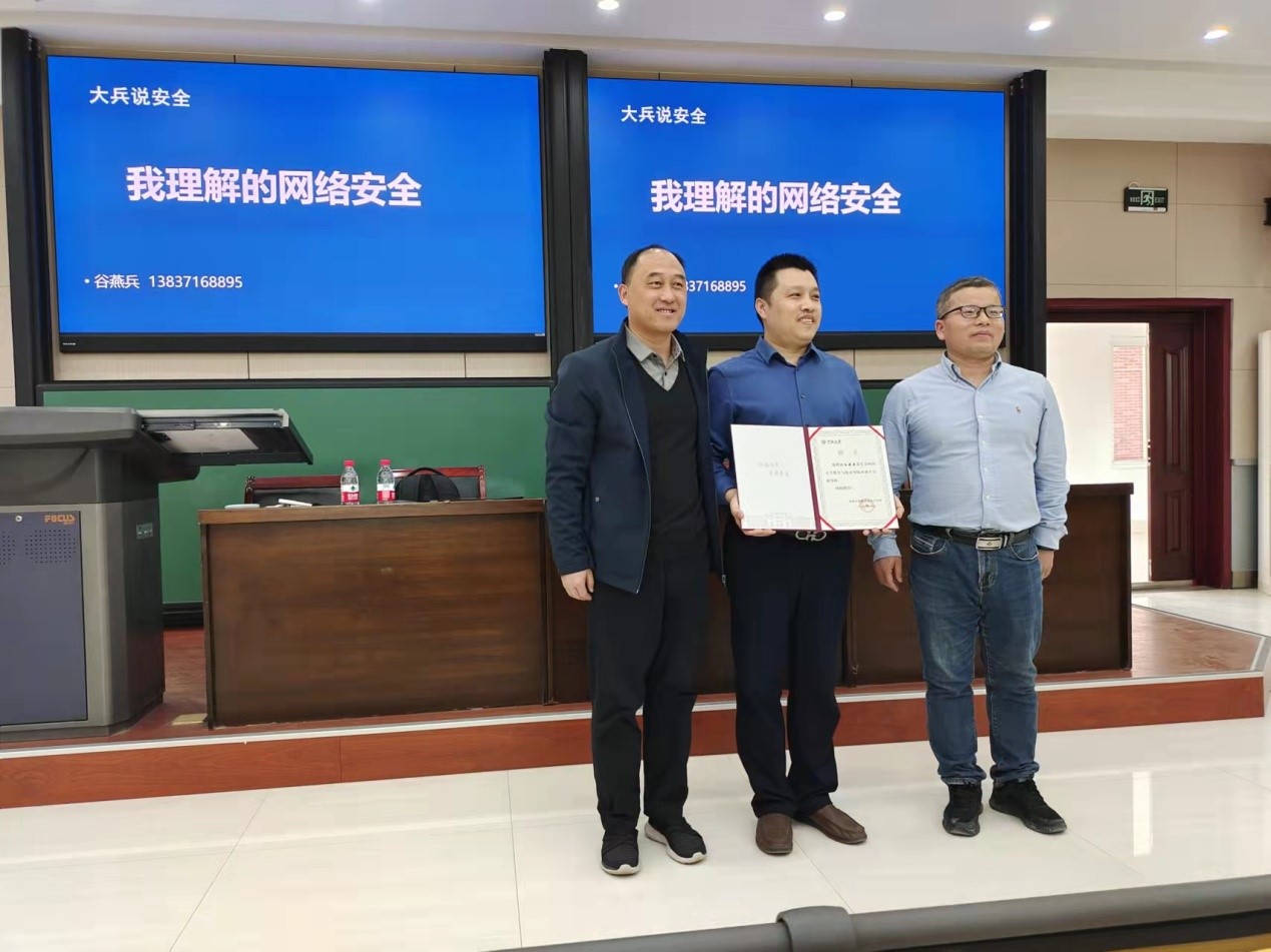 谷燕兵还向同学们详细介绍了网络安全专业、网络安全人才的社会需求和网络安全行业的发展前景,并为同学们的就业和创业工作提供了指导与帮助。