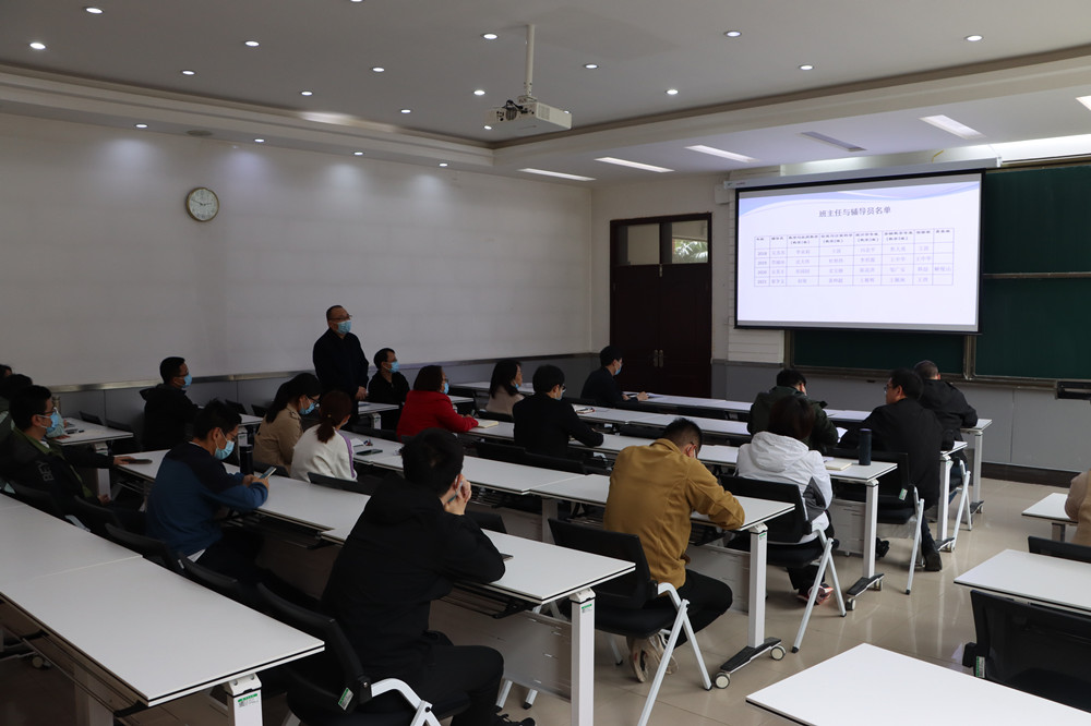 韩小森介绍了学院班主任制度的实施目标及其在学院高素质人才培养中的重要意义,他希望班主任能充分发挥在综合育人方面的专业优势,并在学生的课程学习、专业规划、专业发展和综合发展等方面发挥重要指导作用。同时他也要求辅导员在做好学生日常管理工作的同时,注重加强与学生深入交流,及时掌握学生思想动态,以更好引导学生成长成才。针对新形势下的综合育人工作,他也提出了具体要求:第一,要以高度的责任心,切实履行育人职责;第二,要讲究灵活的工作方式方法,做到因材施教,因人施教,科学总结育人规律;第三,要建立协同工作机制,形成育人合力,更好地为学生成长、成才服务,推动学院人才培养的高质量发展。