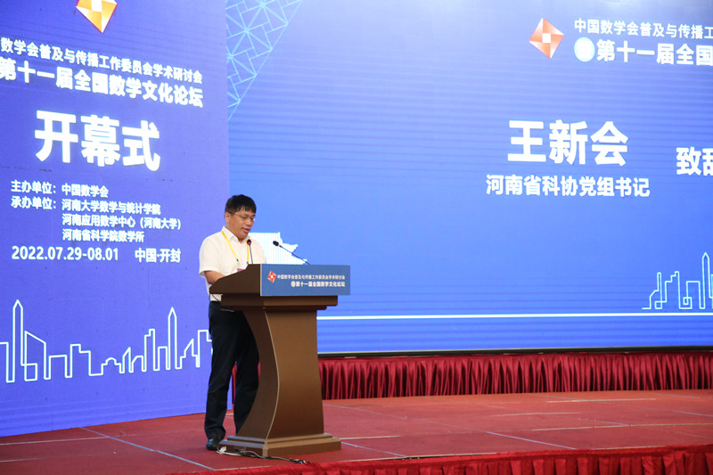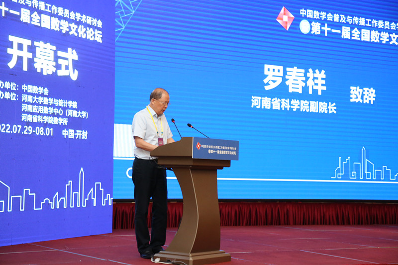)、河南省科学院数学所共同承办的第十一届全国数学文化论坛在我校举办。7月30日上午,论坛在开封开元名都大酒店学术报告厅开幕。中国数学会理事长田刚院士,中国科协副主席袁亚湘院士,河南省科协党组书记王新会,河南省科学院副院长罗春祥,中国数学会副理事长周爱辉研究员,山东大学副校长刘建亚教授,av麻豆