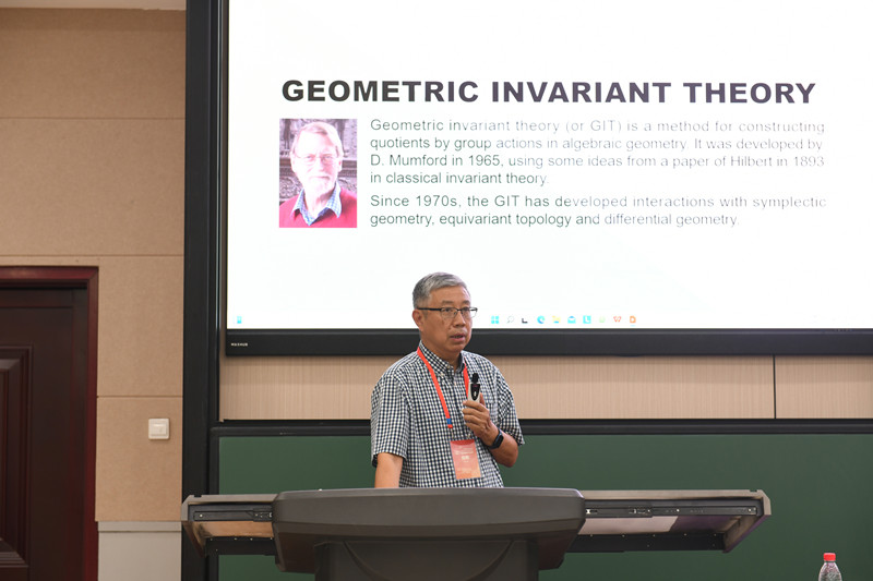 田刚院士从几何的主要研究对象是各种群作用下的不变量出发,以SL(2,C)为例,指出其上的多项式空间在一个代数群作用下,其不变多项式形成一个交换代数,向大家介绍了经典的几何不变理论(GIT)。田刚院士详细阐释了在求解Kähler-Einstein度量w(满足Ric(w)=λw)问题中的一些重要结果,进而结合自己的研究成果向大家介绍了K-稳定性的定义、应用和发展历程,指出K-稳定性是解Kähler-Einstein度量的充要条件。最后田刚院士还介绍了过去十年中在K-稳定性方面很多重要工作,K-稳定性和几何不变理论(GIT)的关系,并指出K-稳定性在扩展了的几何不变理论框架中是很重要的。