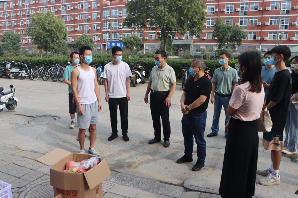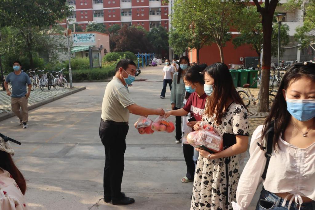 在发放月饼和水果时,师生们亲切交流。老师们向学生致以节日的祝福和问候,关心同学们在校期间的学习、饮食、住宿等情况,向同学们在疫情防控期间对学校各项管理和教学安排的理解支持表达了感谢,并提醒大家珍惜防疫成果,继续提高防护意识,做好个人防护,保持适当社交距离,注意自身身体情况,有问题及时向学院反馈,做好防疫措施等等。