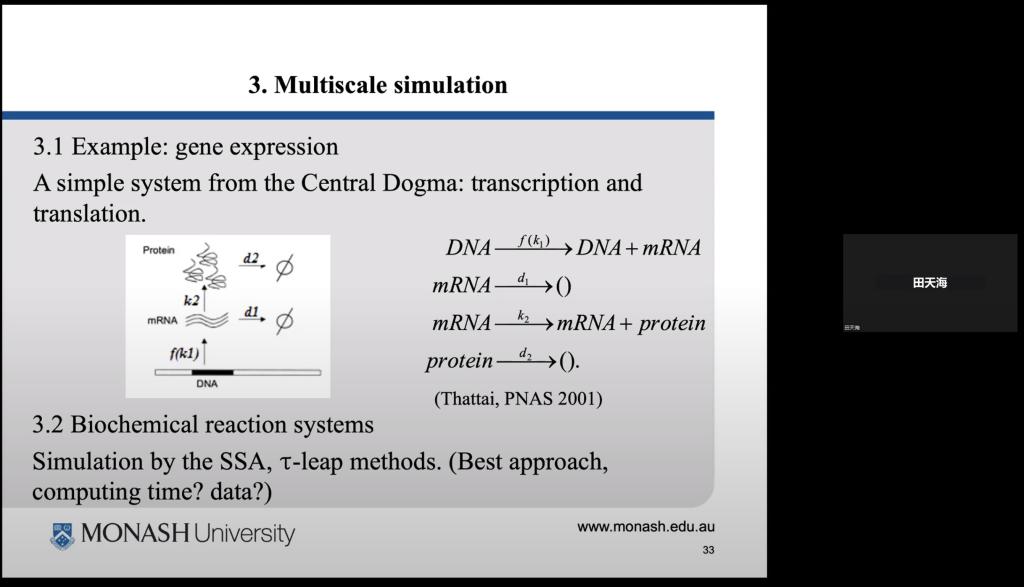 田天海教授讲授《Stochastic modelling and simulation of molecular regulatory networks》