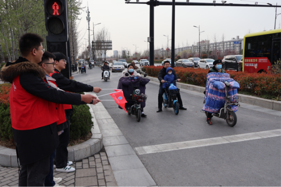 志愿者们身着红色马甲,手持小红旗、小铲子、环保袋,分成两组。男生组协助指挥学校北门十字路口非机动车辆的交通,对随意横穿道路、闯红灯、逆向行驶、骑乘电动车不佩戴安全头盔等违法行为进行劝导,呼吁大家遵守交通规则,安全出行、文明出行。女生组分工有序,对av麻豆